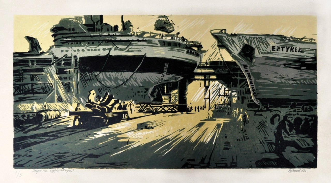 Значительное место в творчестве художника занимал индустриальный пейзаж. Из-под резца мастера вышла большая серия работ, посвященных труженикам судостроительного завода, портовикам, работникам Каховского магистрального канала. Работы, посвященные трудовым подвигам земляков, выполнены языком выразительных цветовых контрастов и чётких силуэтов. Его графическим и живописным произведениям, не лишённым и лирических ноток, присуще глубокое осмысление окружающей действительности.