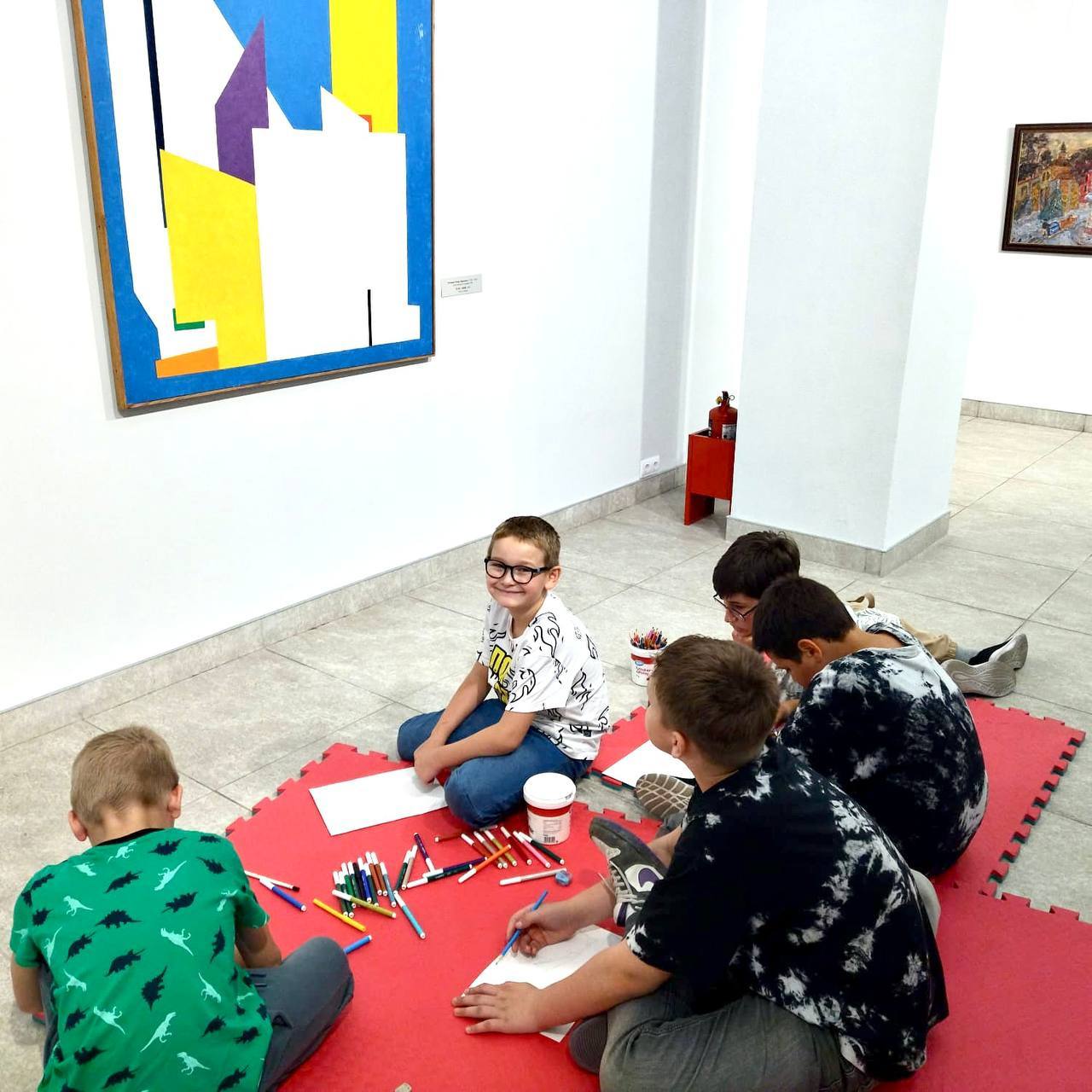 Мероприятие проходит в холле, где экспонируется выставка детского художественного творчества «В мире красок». В экспозиции представлены картины и работы декоративно-прикладного творчества учащихся детских художественных школ и детских школ искусств Мурманской области.