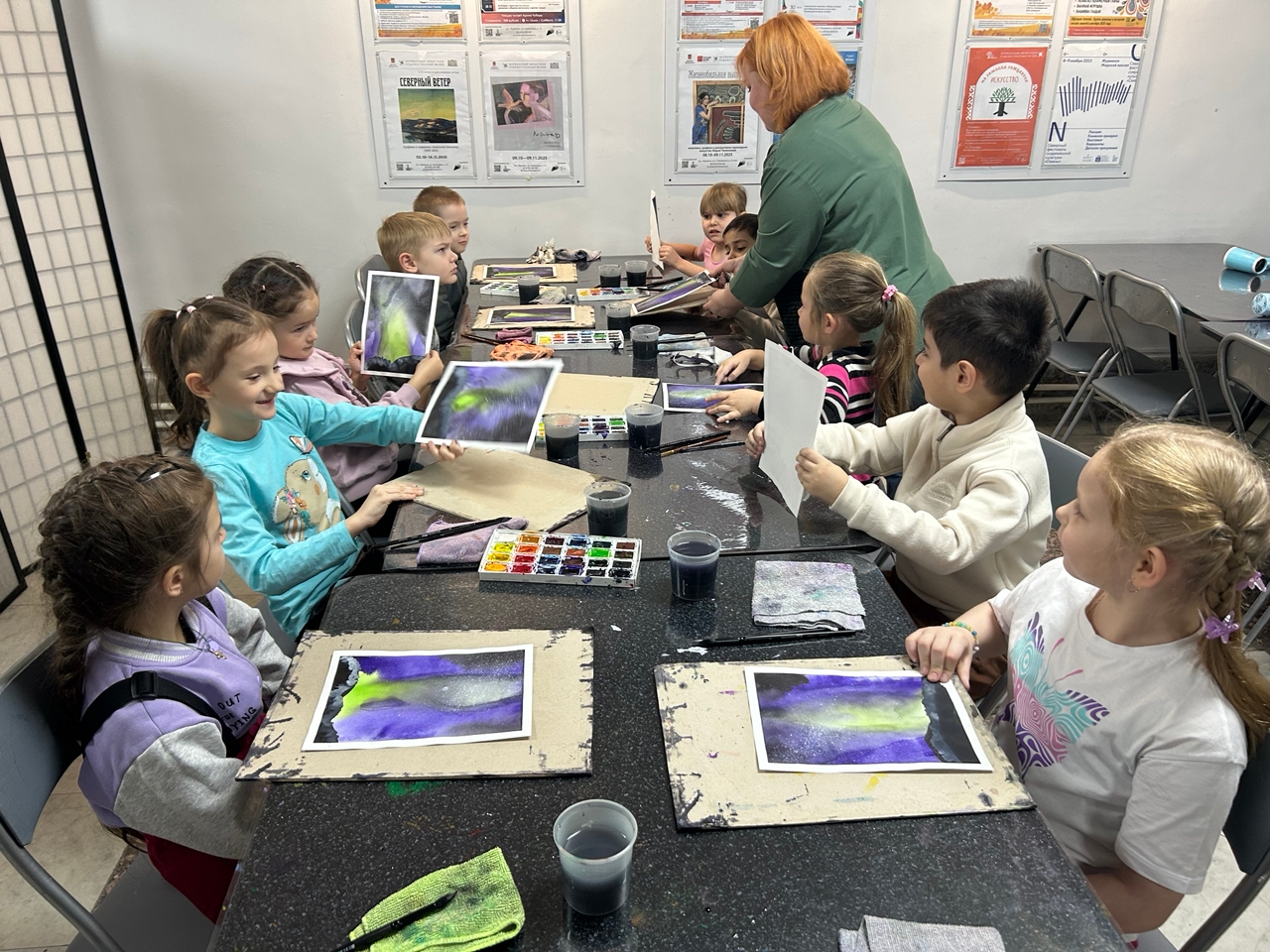2 ноября в главном здании Мурманского областного художественного музея состоялся мастер-класс «Как приручить акварель. Прием "Мокрым по мокрому" для детей из детского сада №83