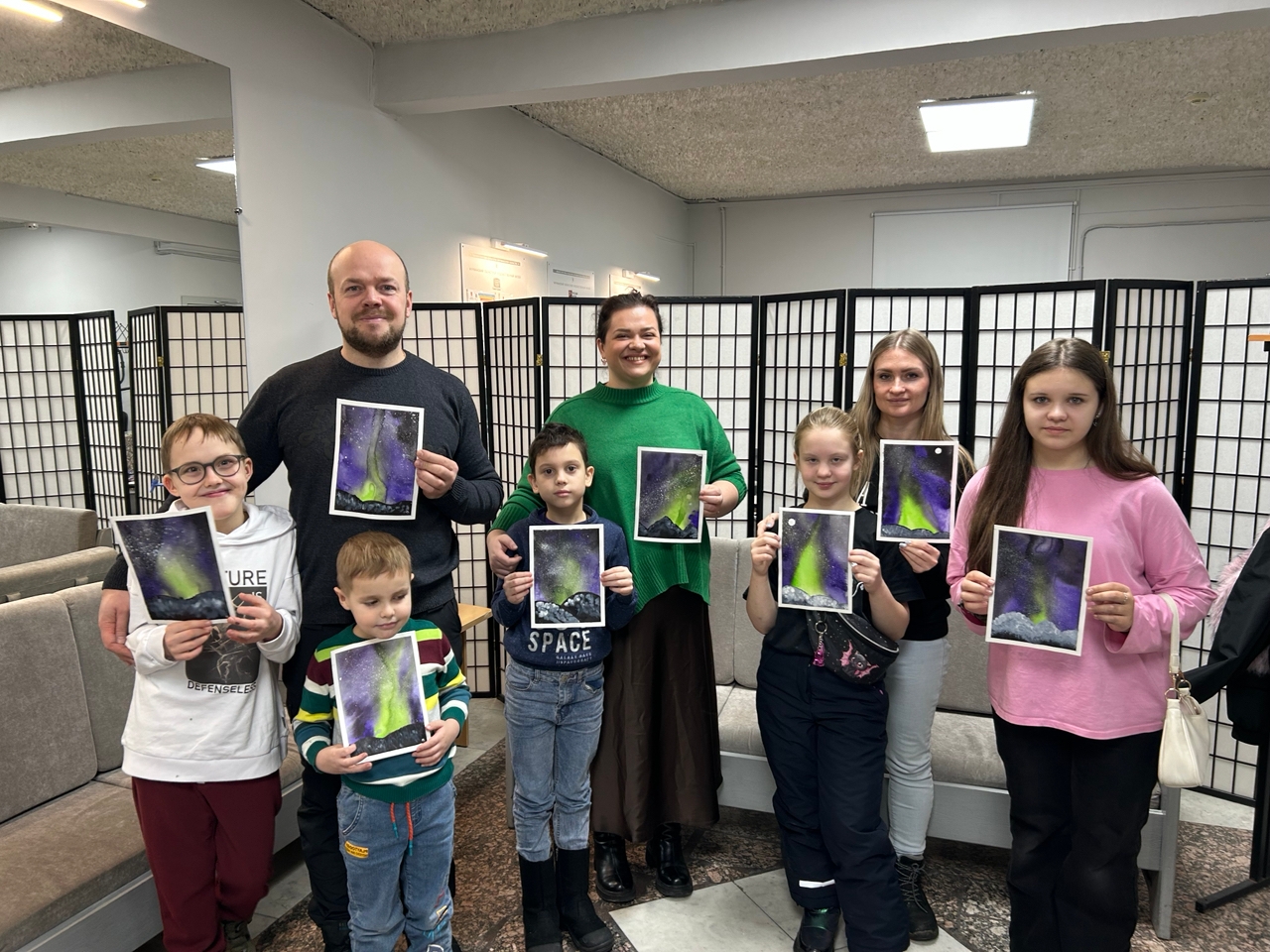 В творческий процесс были вовлечены не только дети, но и их родители, ведь прием «Мокрым по мокрому» в акварельной технике настолько идеально подходит для создания ночного неба, рассекаемого скоплением звезд, что просто невозможно удержаться и не начать рисовать!