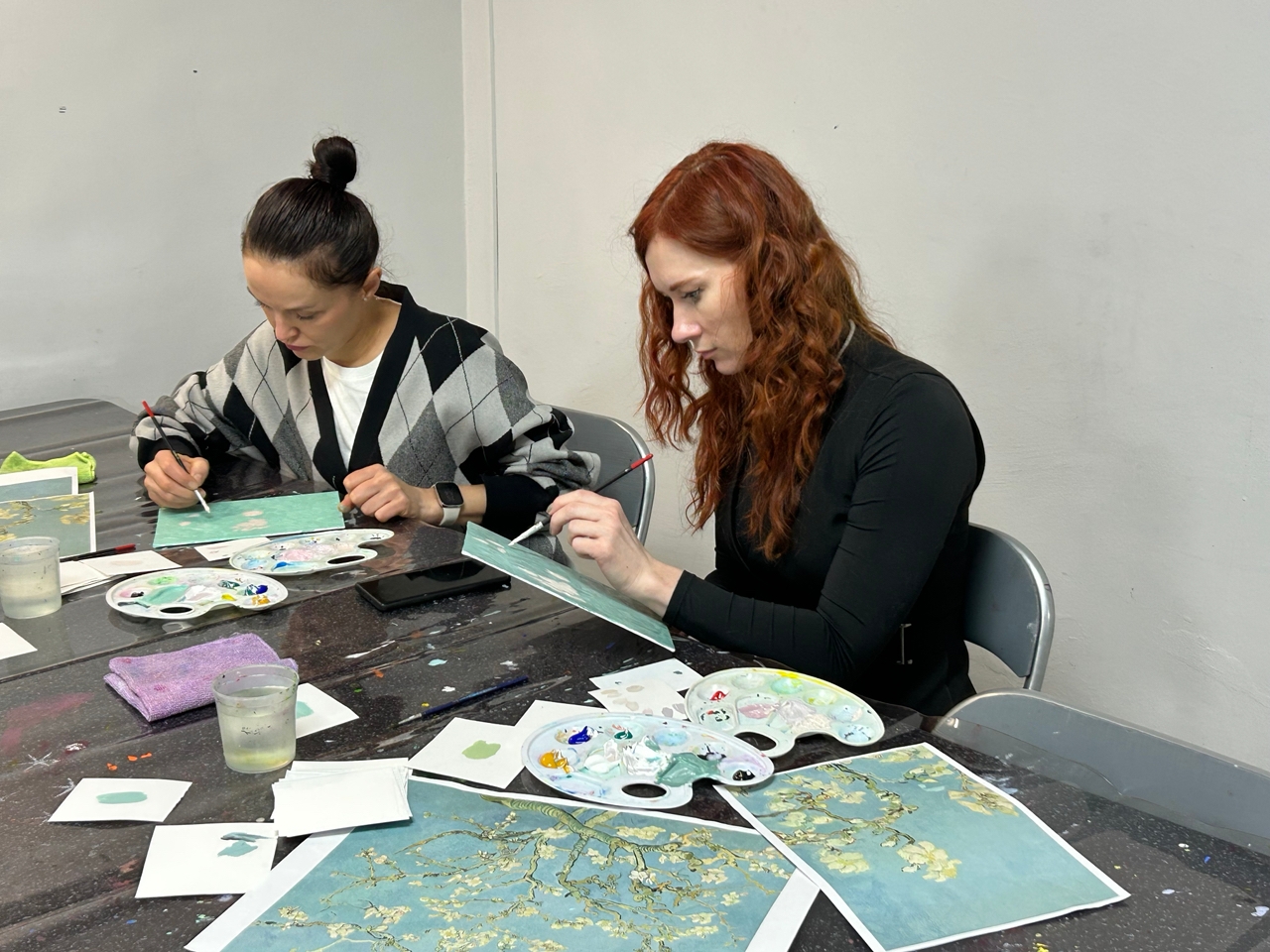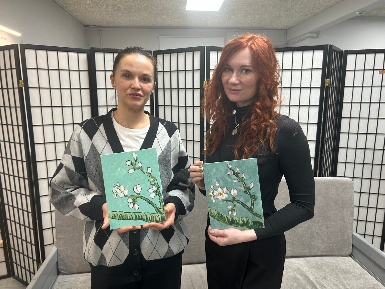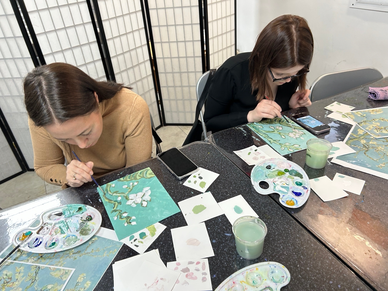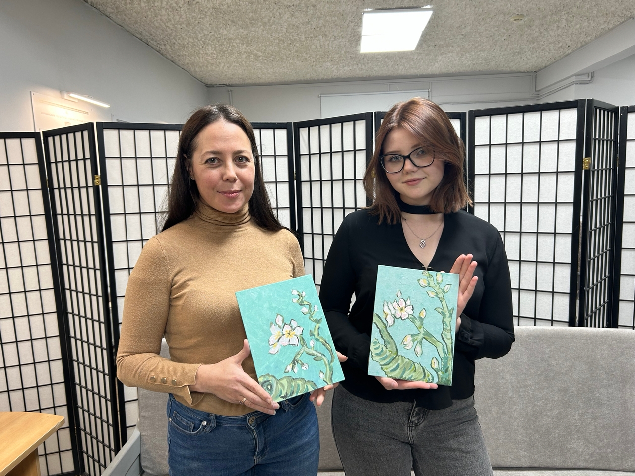 Картина «Цветущие ветки миндаля» была особенной для Винсента Ван Гога, ведь он написал ее в честь рождения его племянника и тезки, сына его брата Тео. Как выяснилось, особенной она оказалась не только для художника, но и для участников мастер-класса. Каждый гость музея с трепетом подбирала и оттенок бирюзового для неба, и нежный розовый для цветков и бутонов, и холодный оливковый для ветвей… Итогом встречи стали чудесные картины, пропитанные духом Винсента Ван Гога.