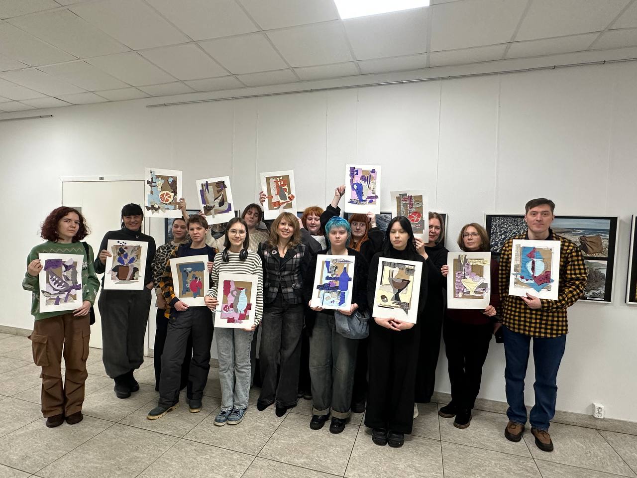 В рамках работы выставки «Собрание сочинений. Том 35» Анна Кирилловна Векслер провела мастер-класв технике коллаж для студентов-живописцев Мурманского колледжа искусств.