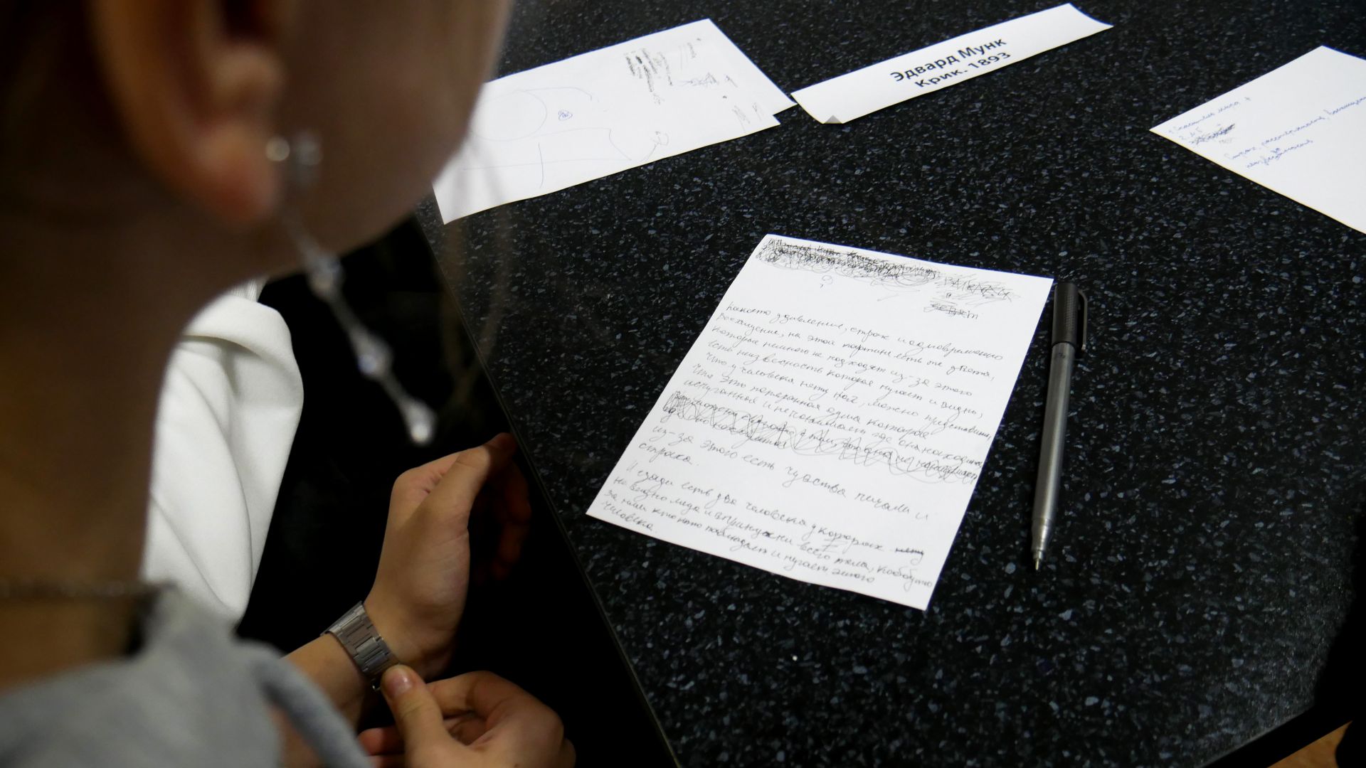 Далее командам предлагалось выполнить задания. Например, «Аукцион» – нужно было записать предложенные картины в порядке возрастания их стоимости на мировых аукционах. Трудной загадкой для участников стал «Черный ящик» – как предметы, находящиеся в нем связаны с живописью. С большим энтузиазмом ребята попробовали себя в роли экскурсовода по одной картине, выпавшей в задании «25 кадр».