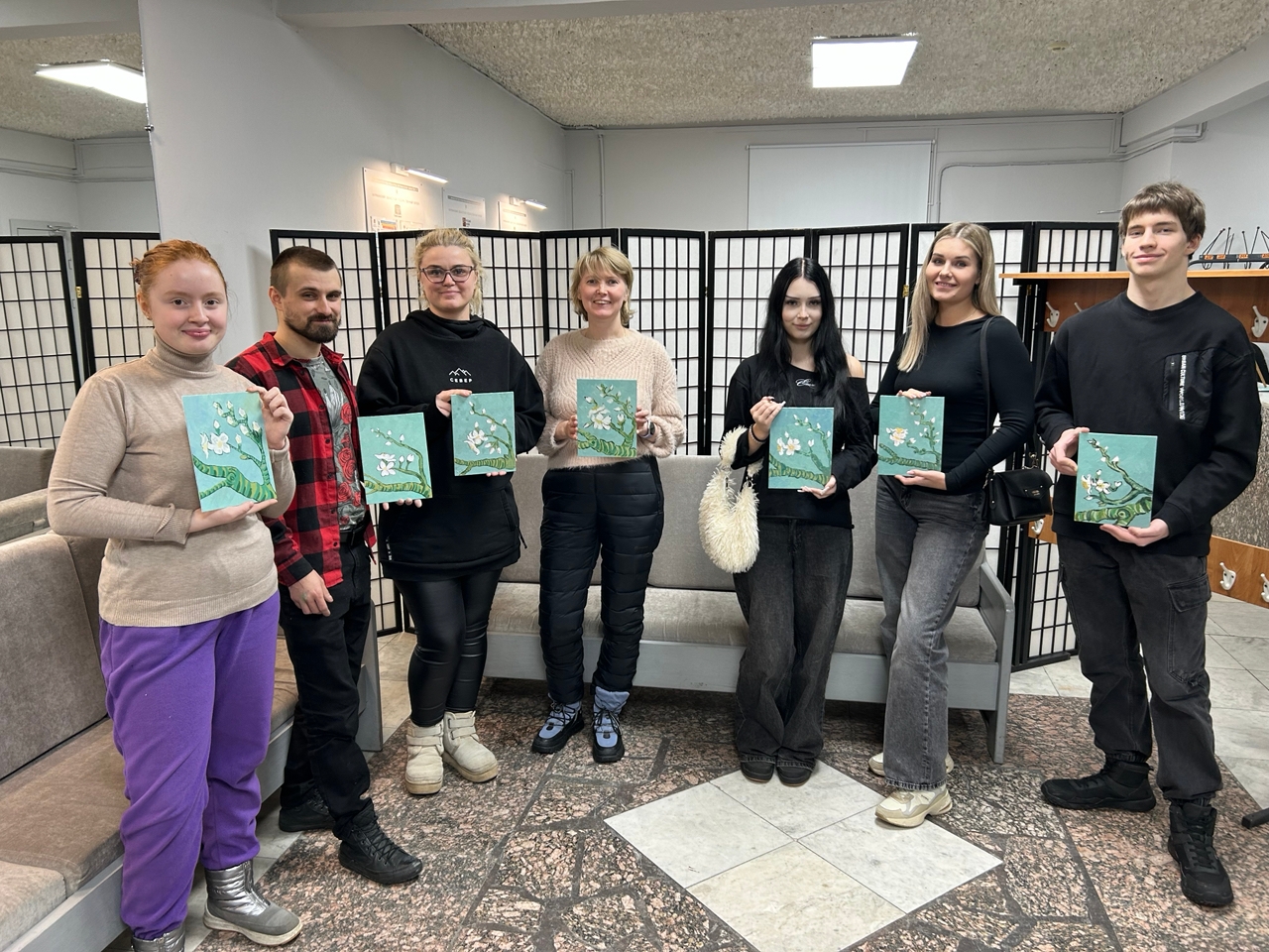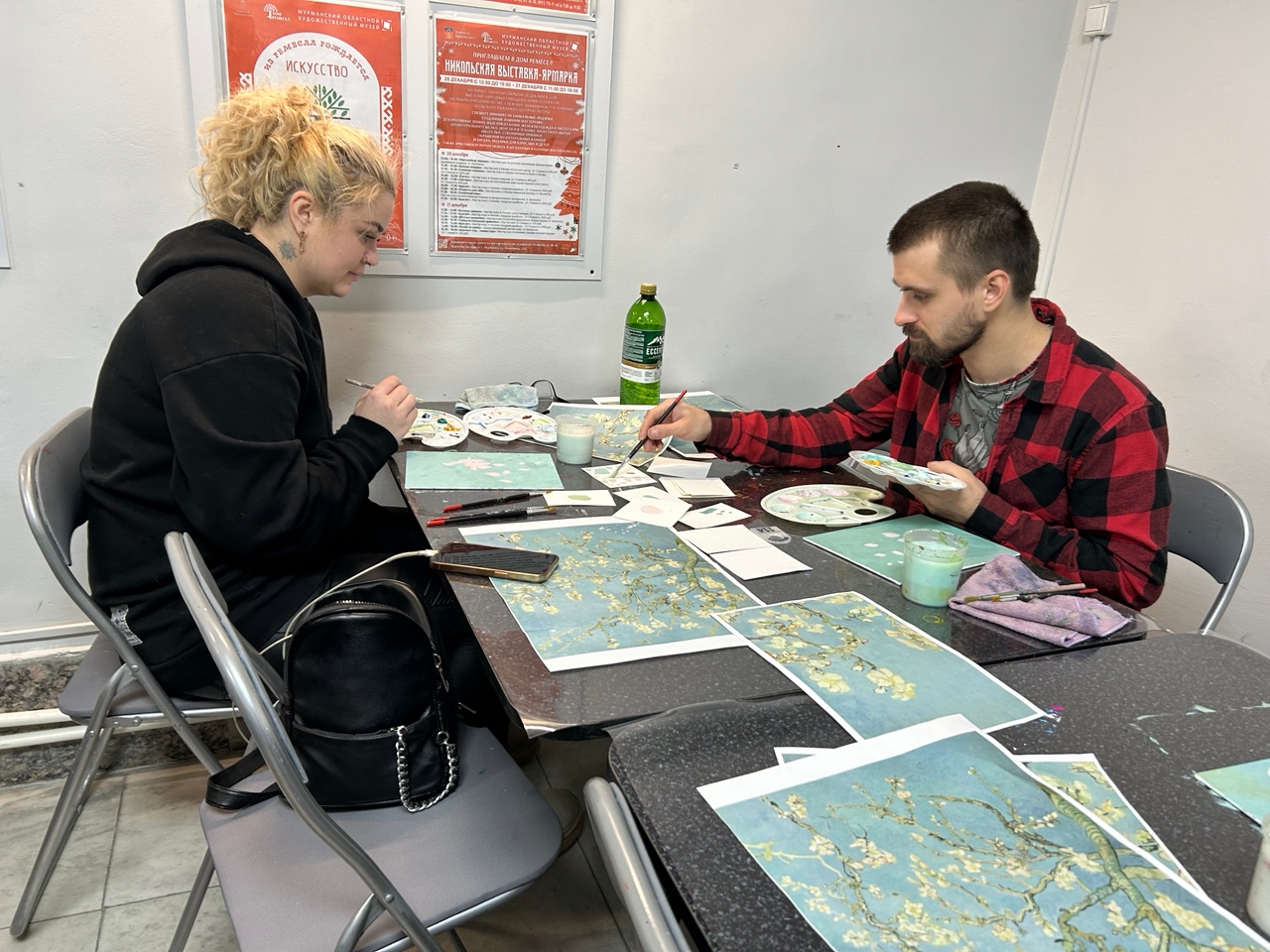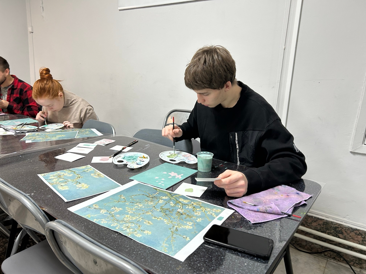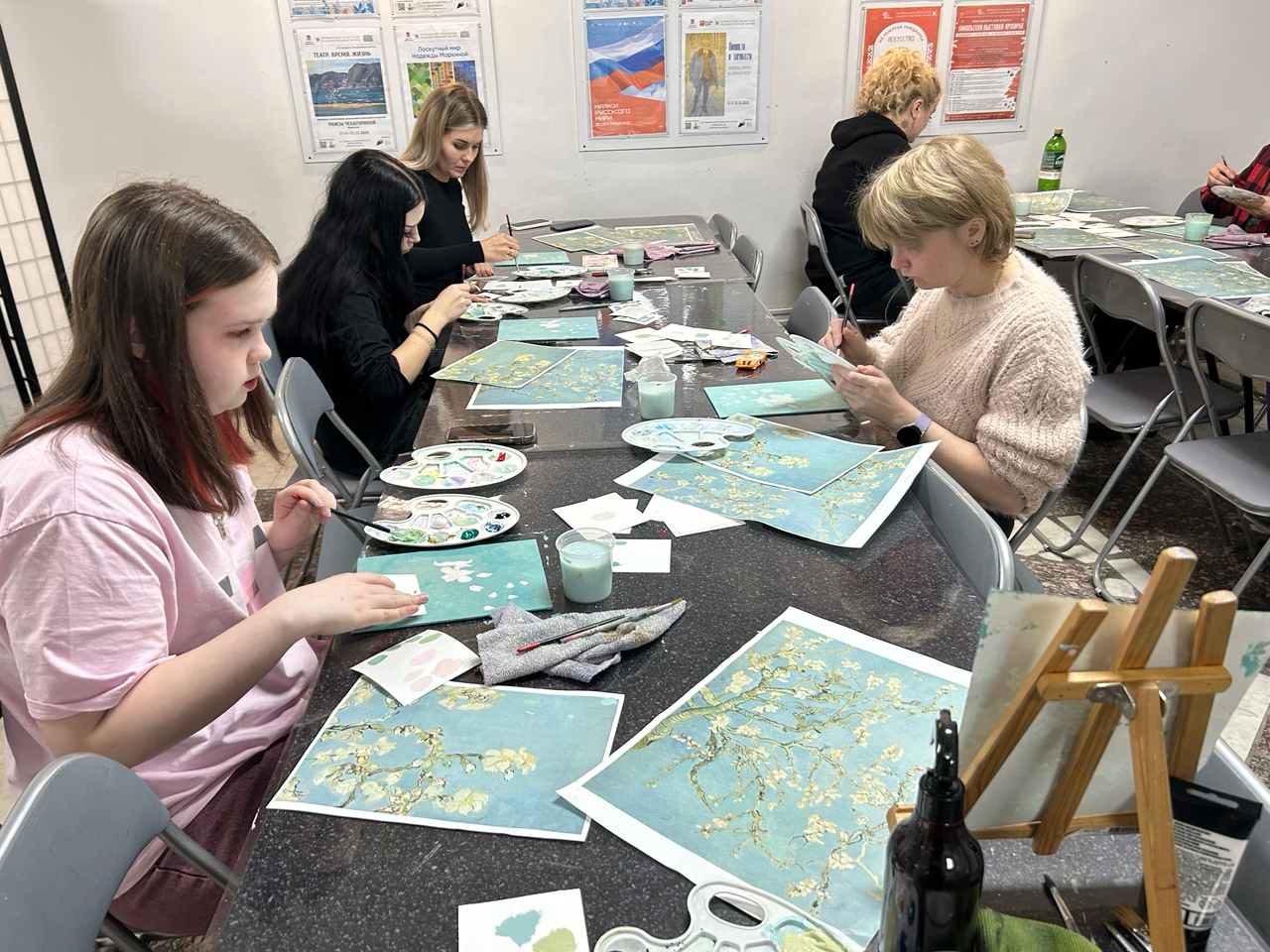 В этот раз на встрече неравнодушных к творчеству людей мы рисовали «Цветущие ветки миндаля». Эта картина была особенной для Винсента Ван Гога, ведь он написал ее в честь рождения его племянника и тезки, сына его брата Тео. Как выяснилось, особенной она оказалась не только для художника, но и для участников мастер-класса. Каждый гость музея с трепетом подбирала и оттенок бирюзового для неба, и нежный розовый для цветков и бутонов, и холодный оливковый для ветвей… Итогом встречи стали чудесные картины, пропитанные духом Винсента Ван Гога.