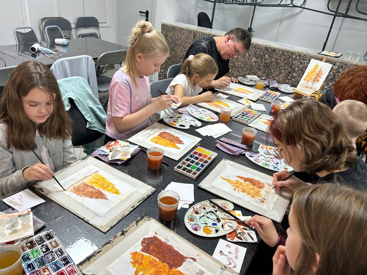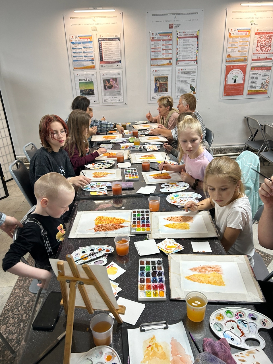 12 октября в главном здании Мурманского областного художественного музея специально для работников ППО ФГУП «Атомфлот» и их семей состоялся мастер-класс в акварельной технике «Золотой пейзаж».