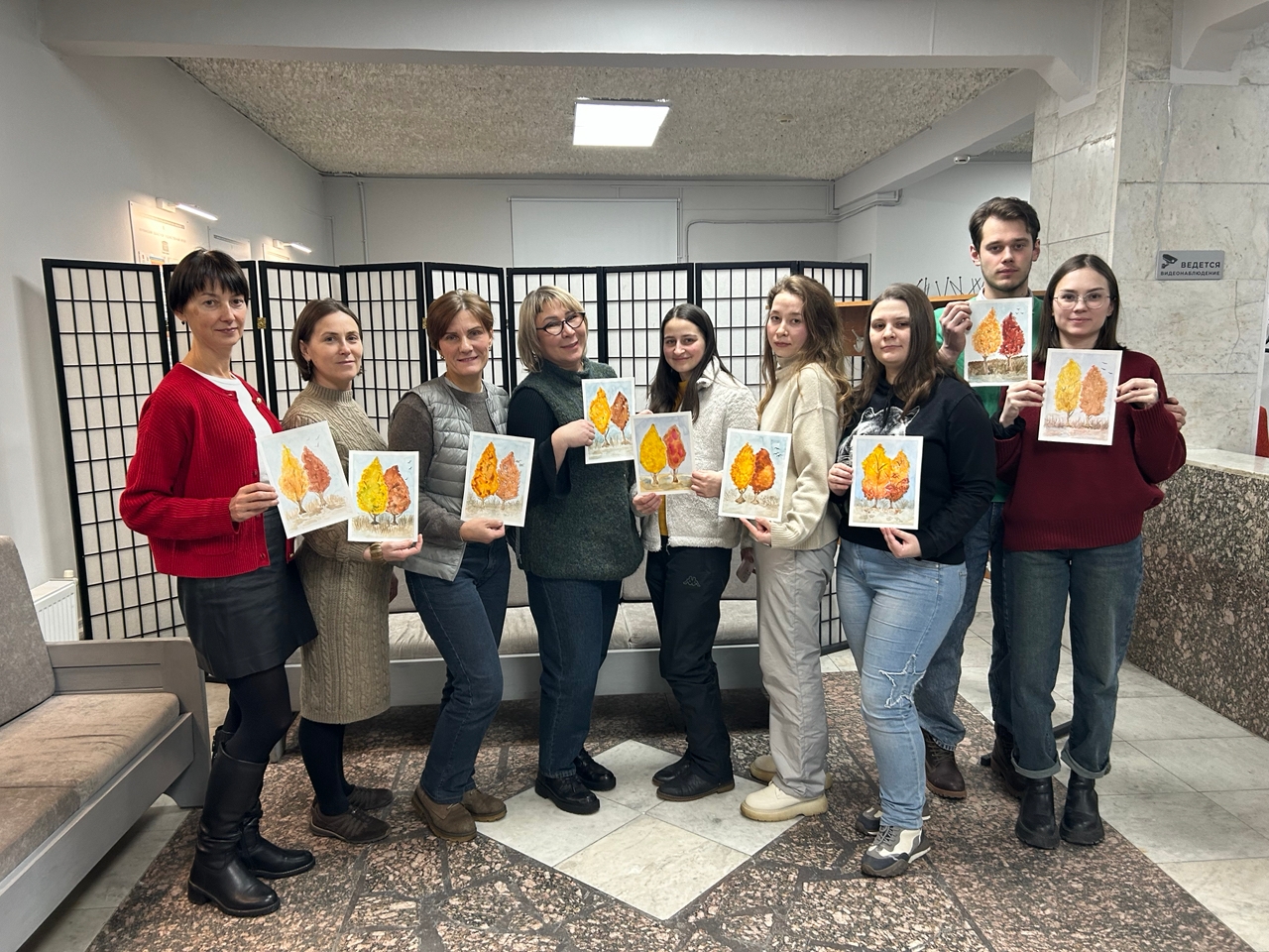 Даже сильные морозы, стоящие за окном, не помещали всем неравнодушным к творчеству людям посетить мастер-класс в акварельной технике «Золотой пейзаж», тем более, что в этот день во всем мире отмечается Международный день акварели. Участники встречи с большим удовольствием погрузились в творческий процесс создания пейзажа с изображением осин различных осенних оттенков. Особенно понравился момент поиска своего собственного перелива акварельной краски и процесс смешивания цветов сразу в рисунке, а не на палитре, как обычно это принято делать.