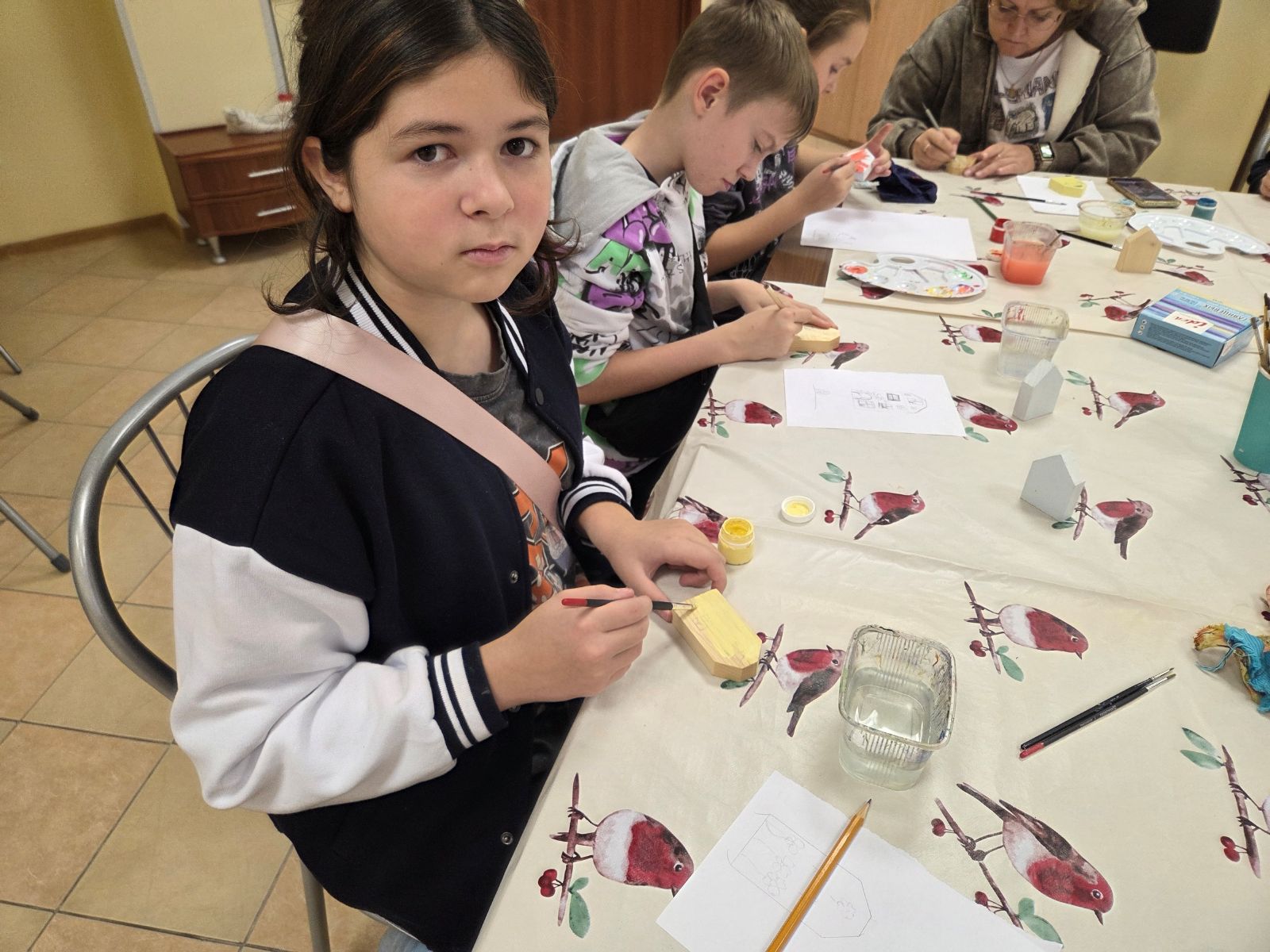 В завершение для гостей состоялся мастер-класс, на котором каждый участник расписал деревянную заготовку в виде домика, который стал настоящим символом индивидуальности. Участники смогли выбрать различные стили росписи, от традиционных народных мотивов до современных абстракций, что позволило каждому раскрыть свой творческий потенциал.