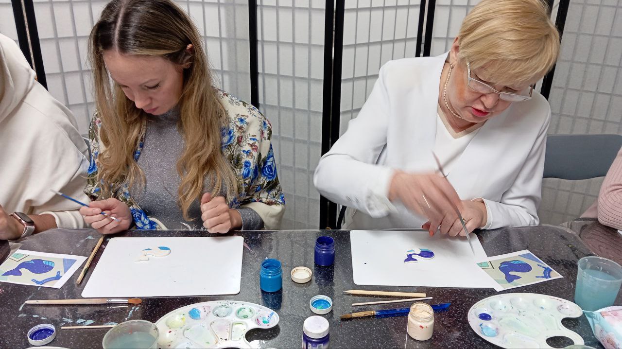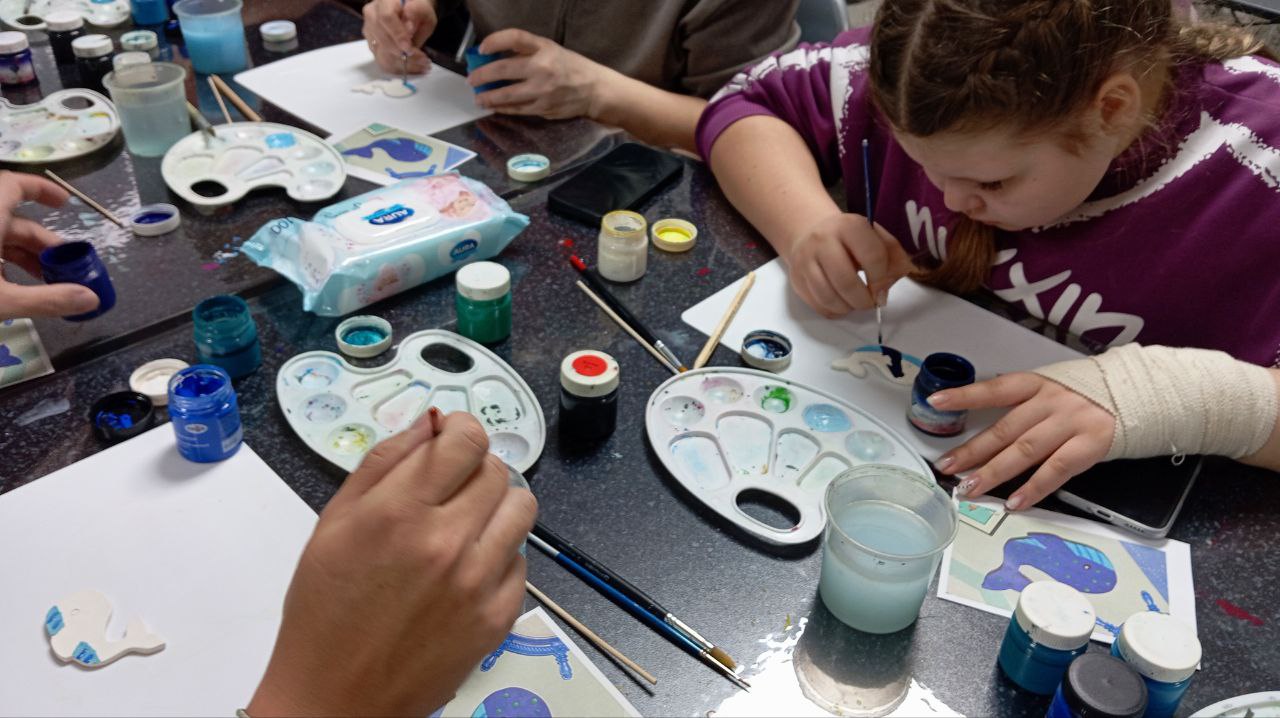 На мастер-классе участники работали с заготовкой-магнитом в форме кита. Отталкиваясь от естественной формы, строения и окраски морских исполинов, гости музея выполнили декоративную роспись заготовки, и каждый стал обладателем уникального сувенира.