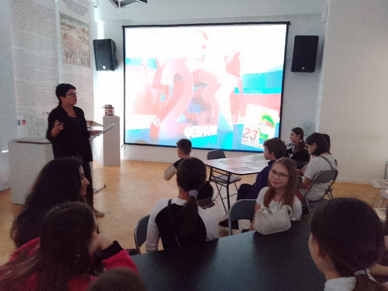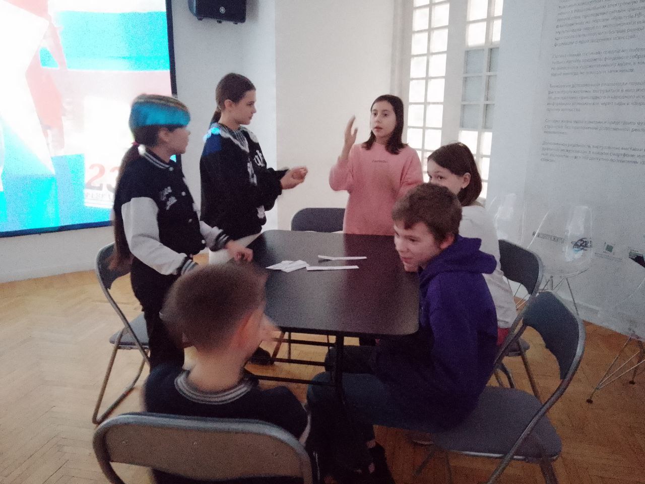 Почему День защитника Отечества отмечается 23 Февраля? Что такое аксельбант? А какого цвета знаменитый краповый берет? Ответить на эти и многие другие вопросы 27 февраля смогли учащиеся средней общеобразовательной школы №45, посетив музейный урок «О Родине! О мужестве! О славе!». Ребята узнали историю возникновения этого праздника, ознакомились с уникальной биографией и творчеством Евсея Евсеевича Моисеенко, а также проявили свои знания, азарт и смекалку в тематических викторинах и конкурсах.