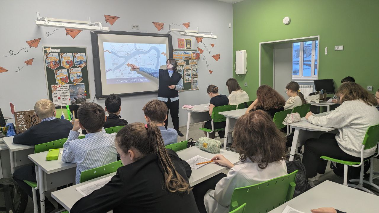 В ходе урока шестиклассники вспомнили ключевые факты об истории одного из самых трагичных периодов не только Великой Отечественной войны, но и летописи нашей страны в целом. Ребята прикоснулись к тяжёлым воспоминаниям одного из жителей блокадного Ленинграда - художника-графика Андрея Алексеевича Ушина. В работах мастера линогравюры человеческие судьбы тесно вплетены в ландшафт города, рядом с фигурами людей всегда присутствуют очертания знаковых зданий Северной столицы.