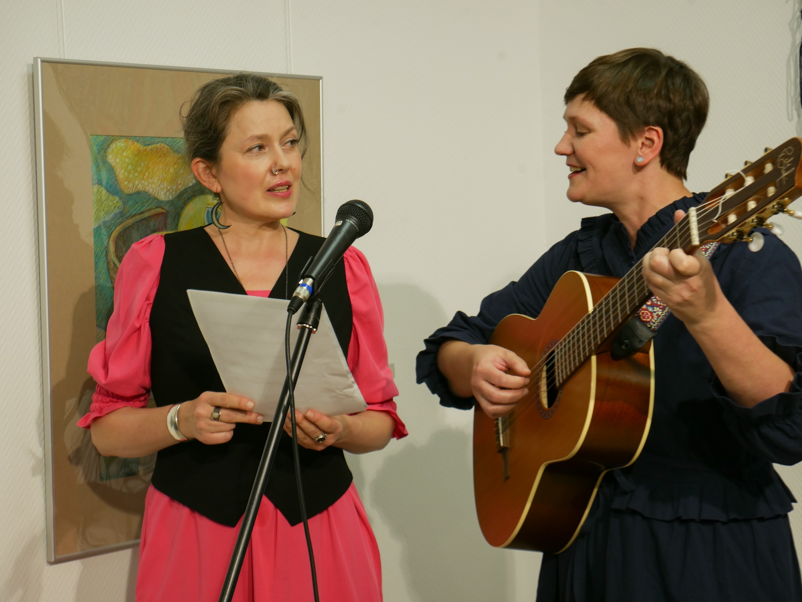 Открытие прошло в теплой доброжелательной атмосфере. В зале собрались близкие и родные люди, друзья и коллеги Марии. Прозвучало множество добрых слов и пожеланий, друг художника Екатерина Ефремова вместе с автором и гостями выставки исполнили несколько песен под гитару.