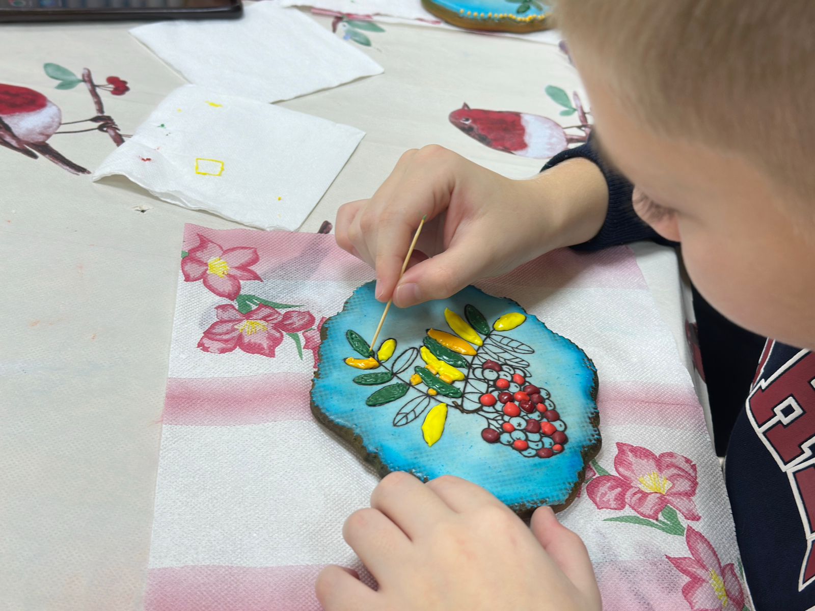 Мы окунулись в волшебный мир кондитерского искусства, создавая уникальные узоры и рисунки на ароматных имбирных пряниках. Каждый участник проявил свою фантазию и мастерство, превращая обычные печенья в настоящие произведения искусства.