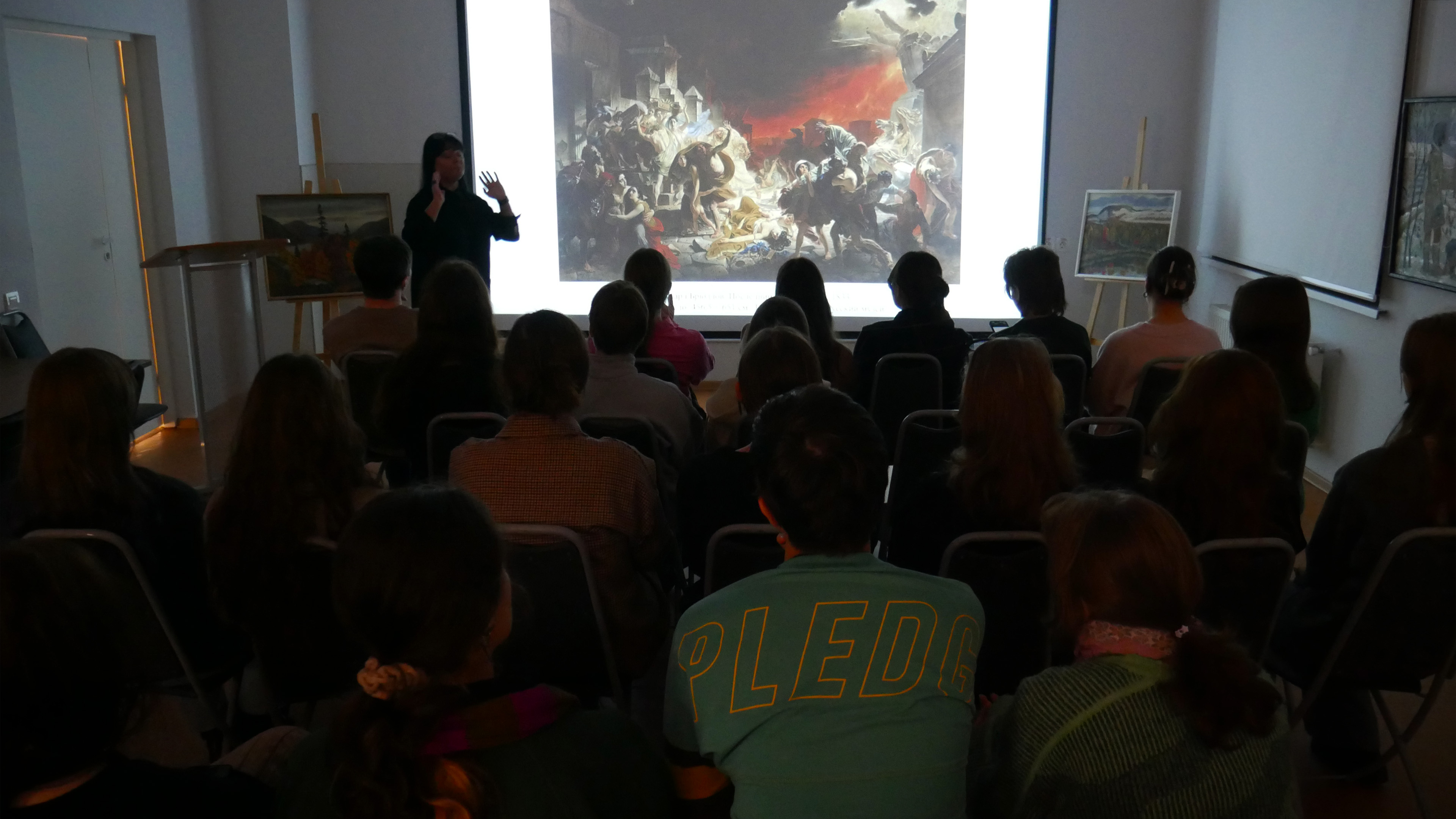Также будущие художники узнали историю создания масштабного полотна Карла Брюллова «Последний день Помпеи», которую художник создавал на протяжении 6 лет.