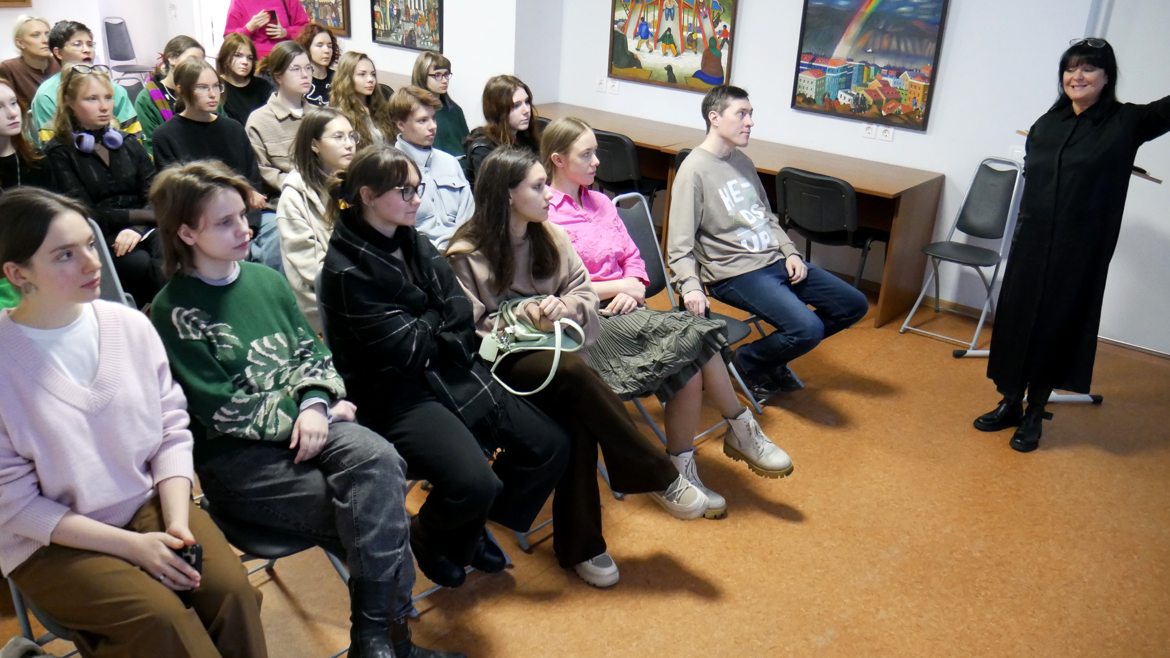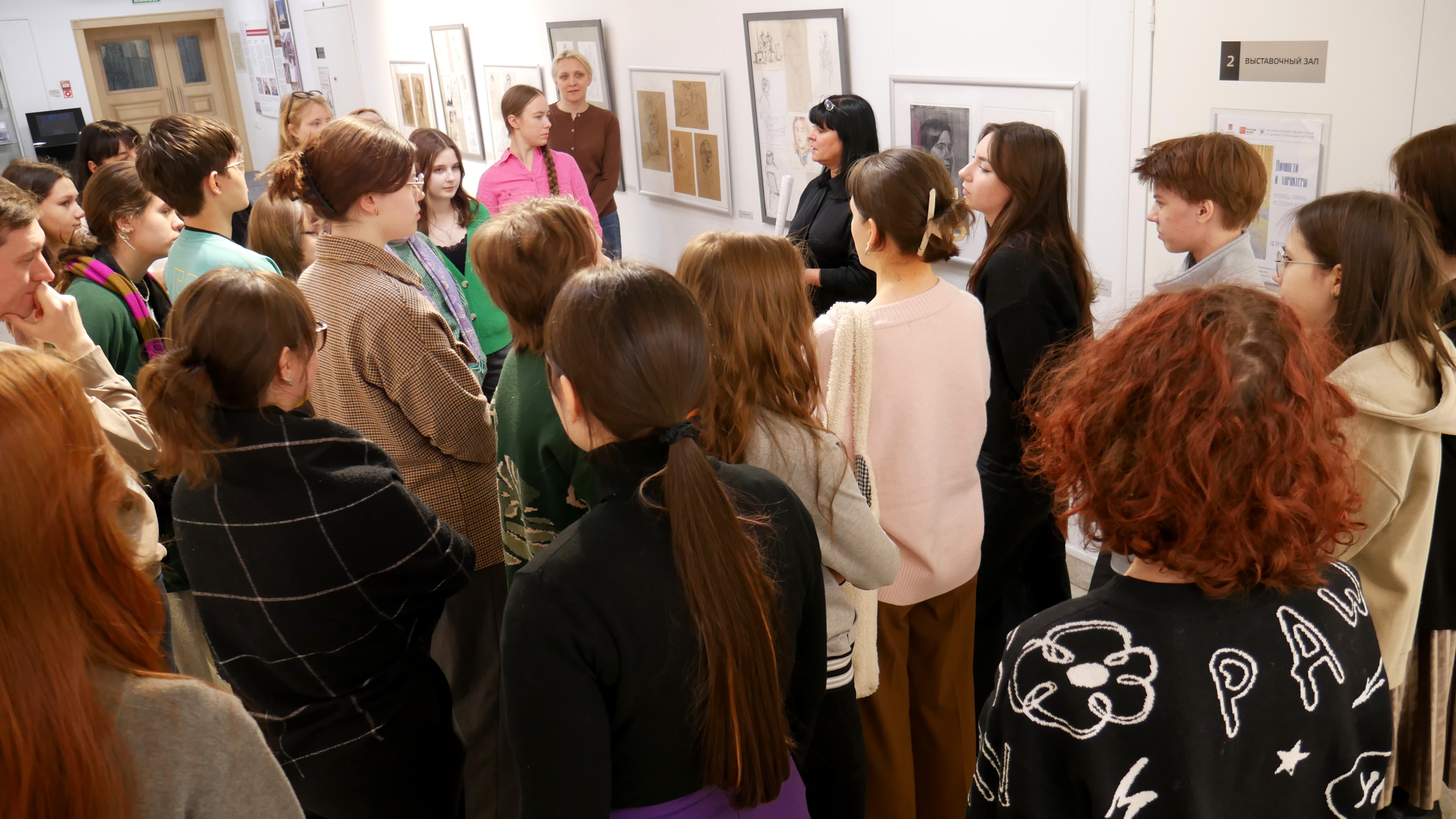 Гостями и главными героями встречи стали студенты отделения «Живопись» Мурманского колледжа искусств. Со студентами всех курсов состоялся диалог на выставке «Живая линия», на которой представлены наброски студентов. Каждый участник пробовал ответить на вопросы ведущей мероприятие Анны Юрьевны Ромашовой. Например, прокомментировать высказывание «Ваша картина готова, осталось только ее написать». Какие вопросы решает эскиз? Обязательно картина должна начинаться с наброска? И главный вопрос: «Что для вас значит набросок?»