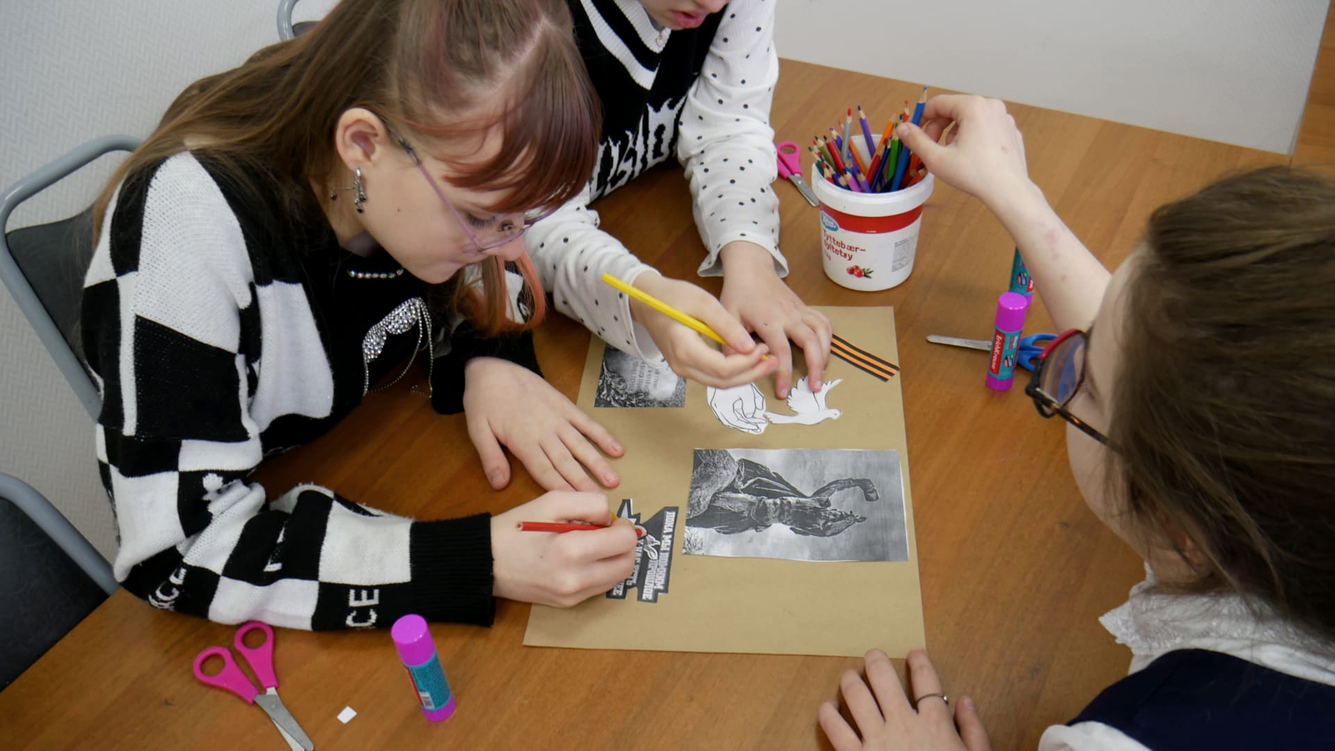 Вспоминали о тяжелых военных буднях Мурманска, о местах и событиях в городе, которым посвящены фотографии, живописные и графические произведения из собрания нашего музея, а также о памятниках героям войны. Ребята делились своими впечатлениями. С большим воодушевлением приняли участие в создании плакатов, посвященных подвигу города Мурманска.