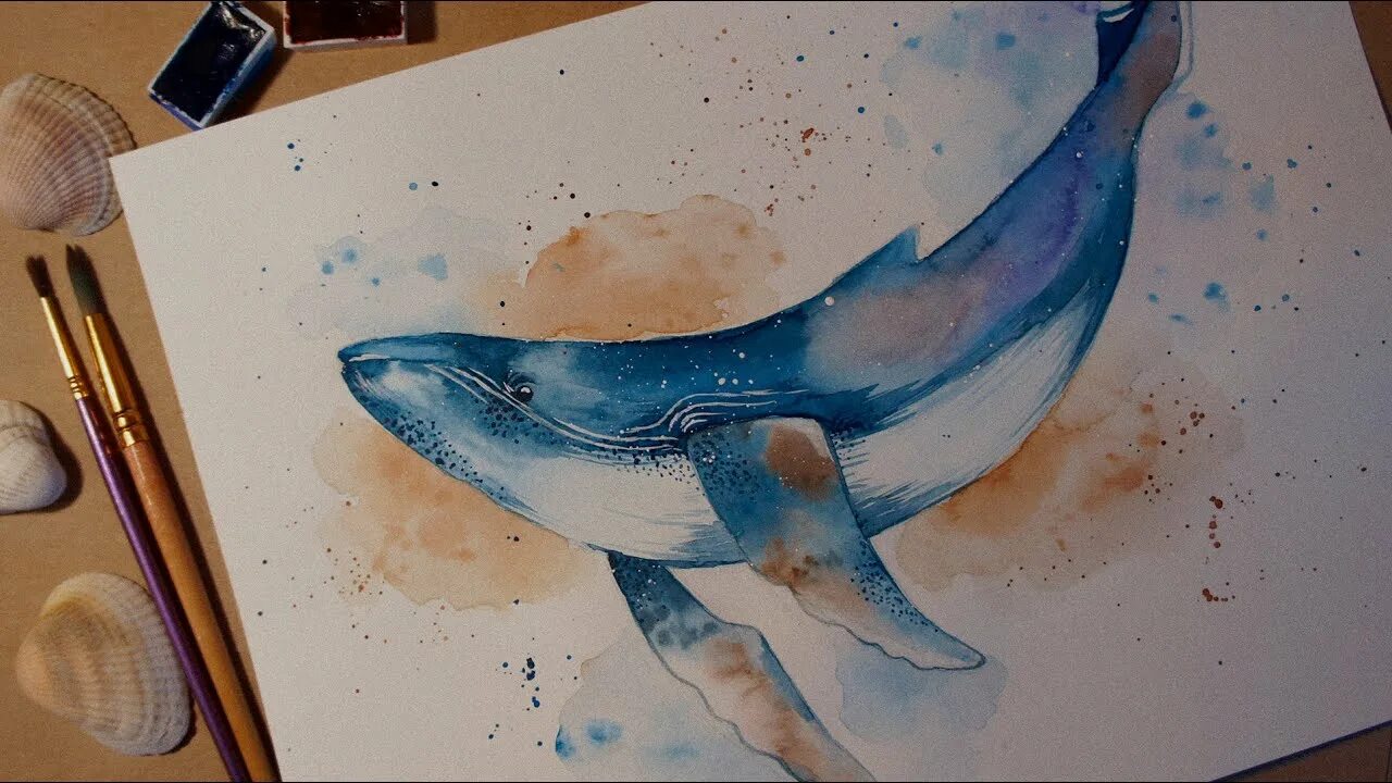 Тема следующего занятия - удивительный морской гигант, символ силы и гармонии - кит. Вас ожидает практическое занятие по созданию акварельного эскиза.