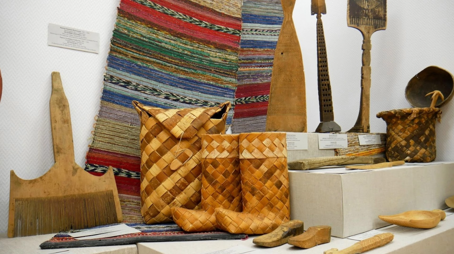 Занятие проводится на выставке «Делу время — потехе час» из собрания музея (художественная обработка дерева, текстиль).
