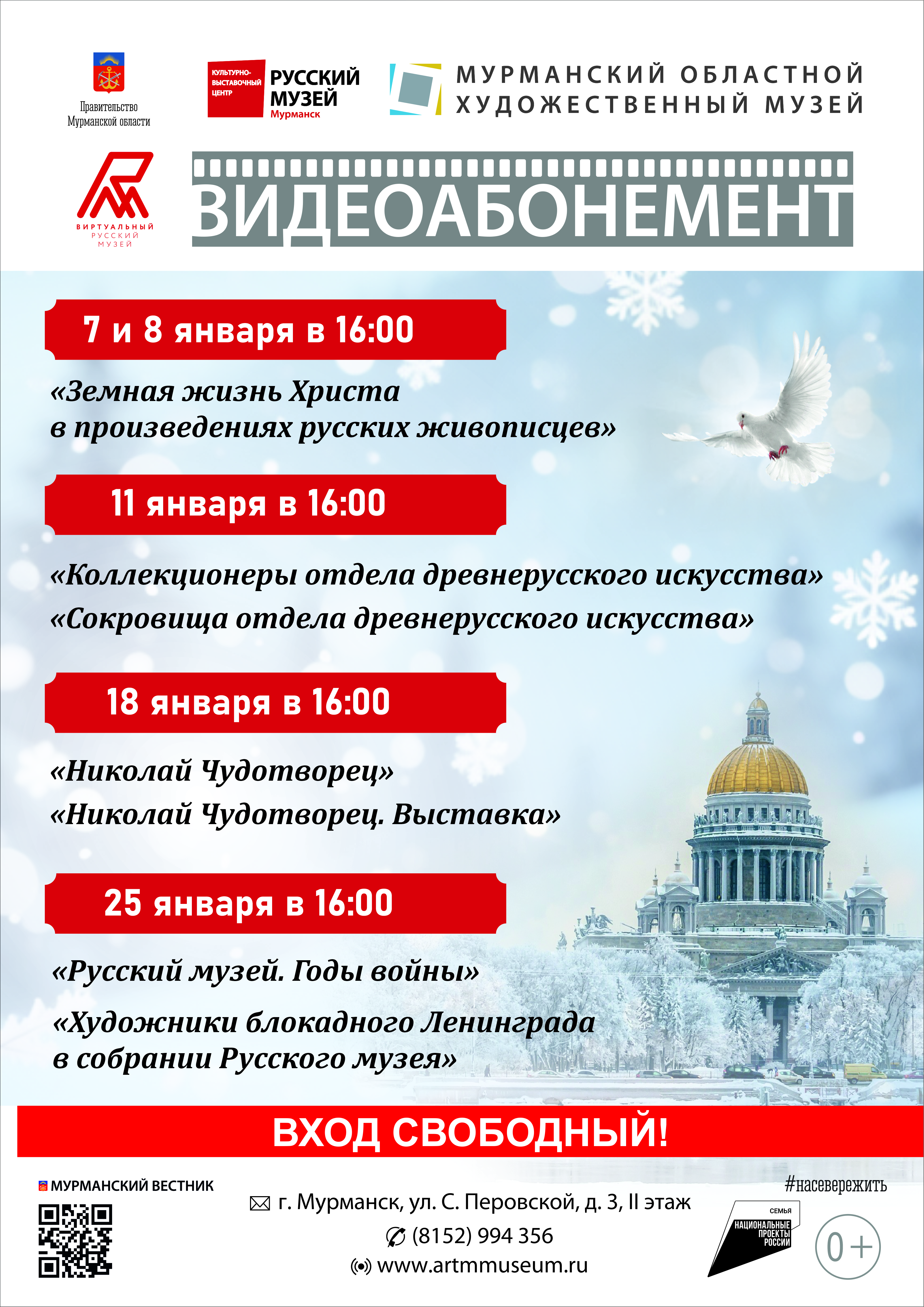 Приглашаем на просмотр фильмов в отдел Мурманского областного художественного музея «Культурно-выставочный центр Русского музея» (ул. Софьи Перовской, 3, II этаж)