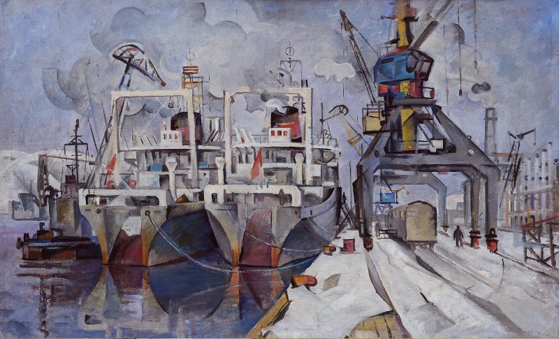Мурманский областной художественный музей представляет вторую выставку из цикла «Музейные истории», на которой будет представлено живописное произведение Германа Андреевича Шемякина «Новый порт» (1970).