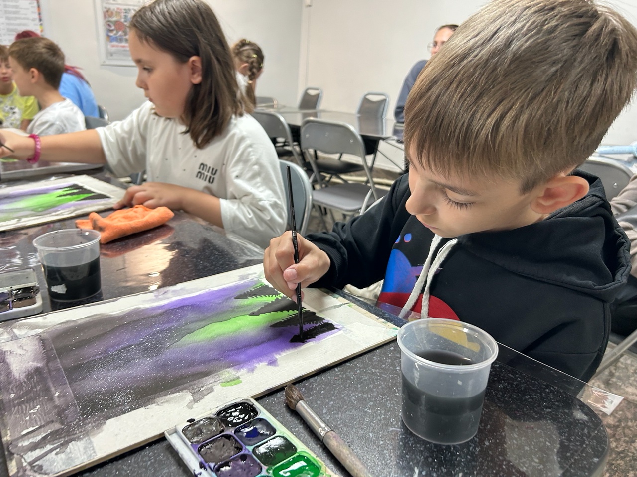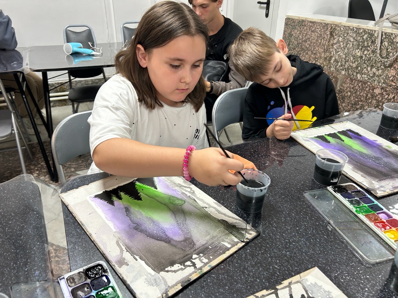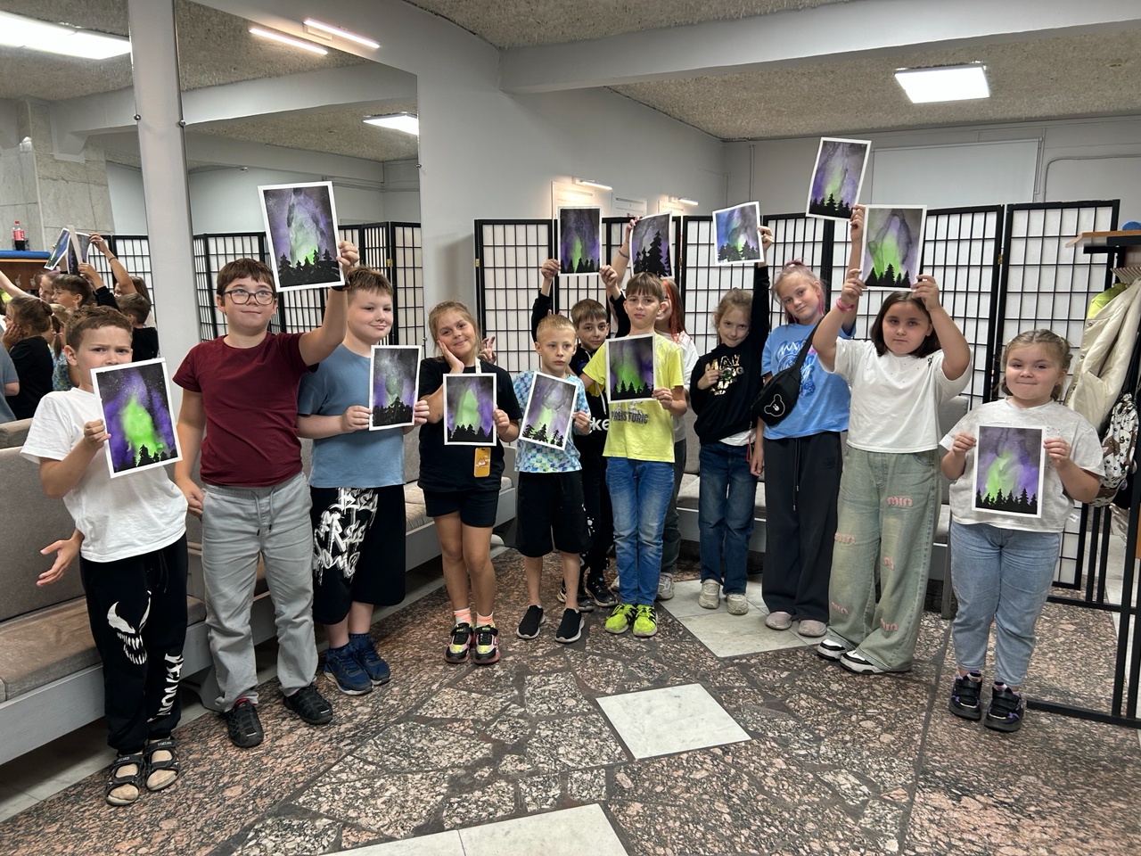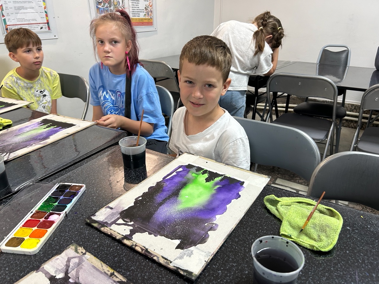 14 августа в главном здании Мурманского областного художественного музея состоялся мастер-класс «Как приручить акварель. Прием "Мокрым по мокрому" для воспитанников летнего лагеря, организованного Центром развития речи «Logolab»