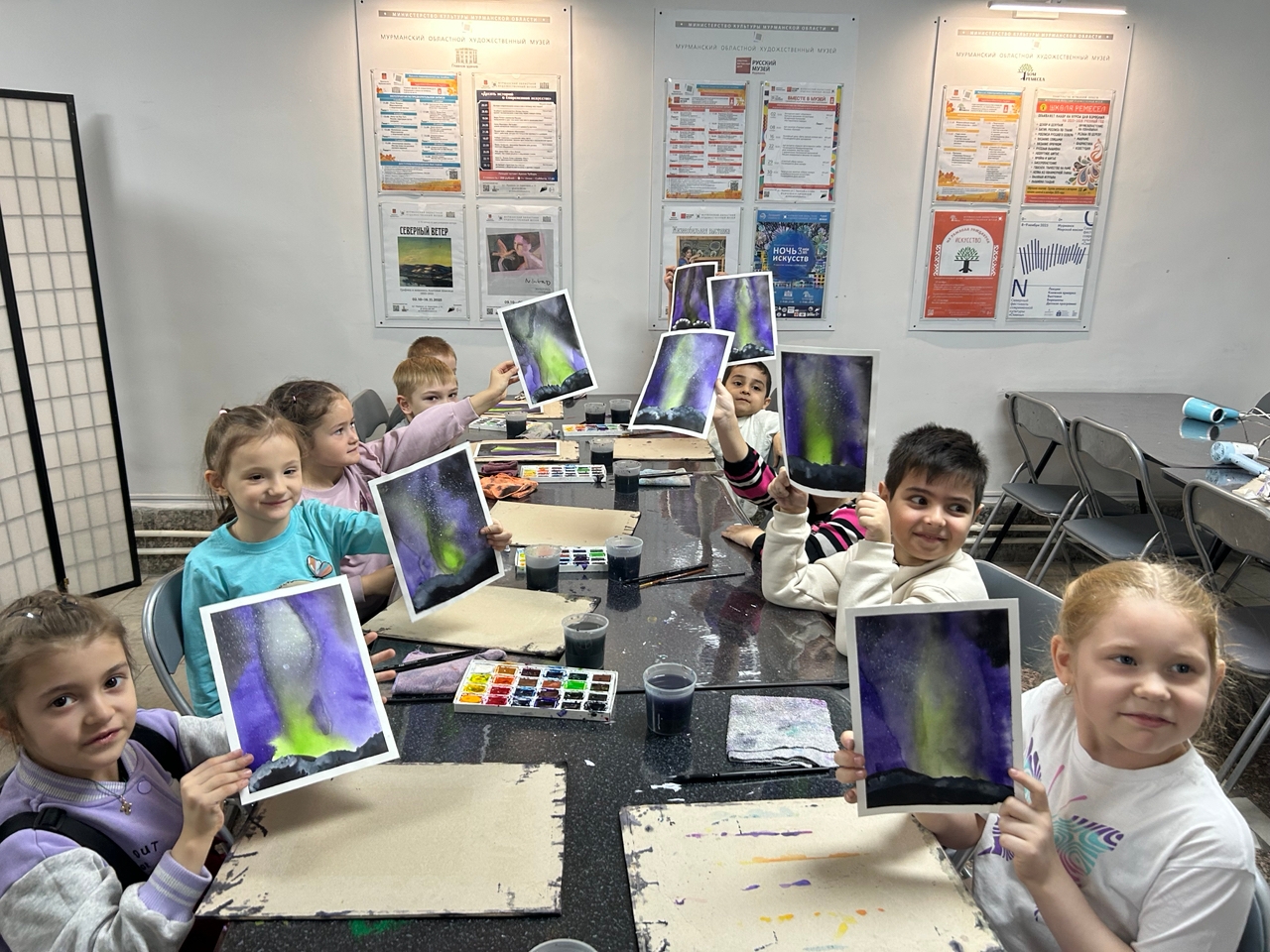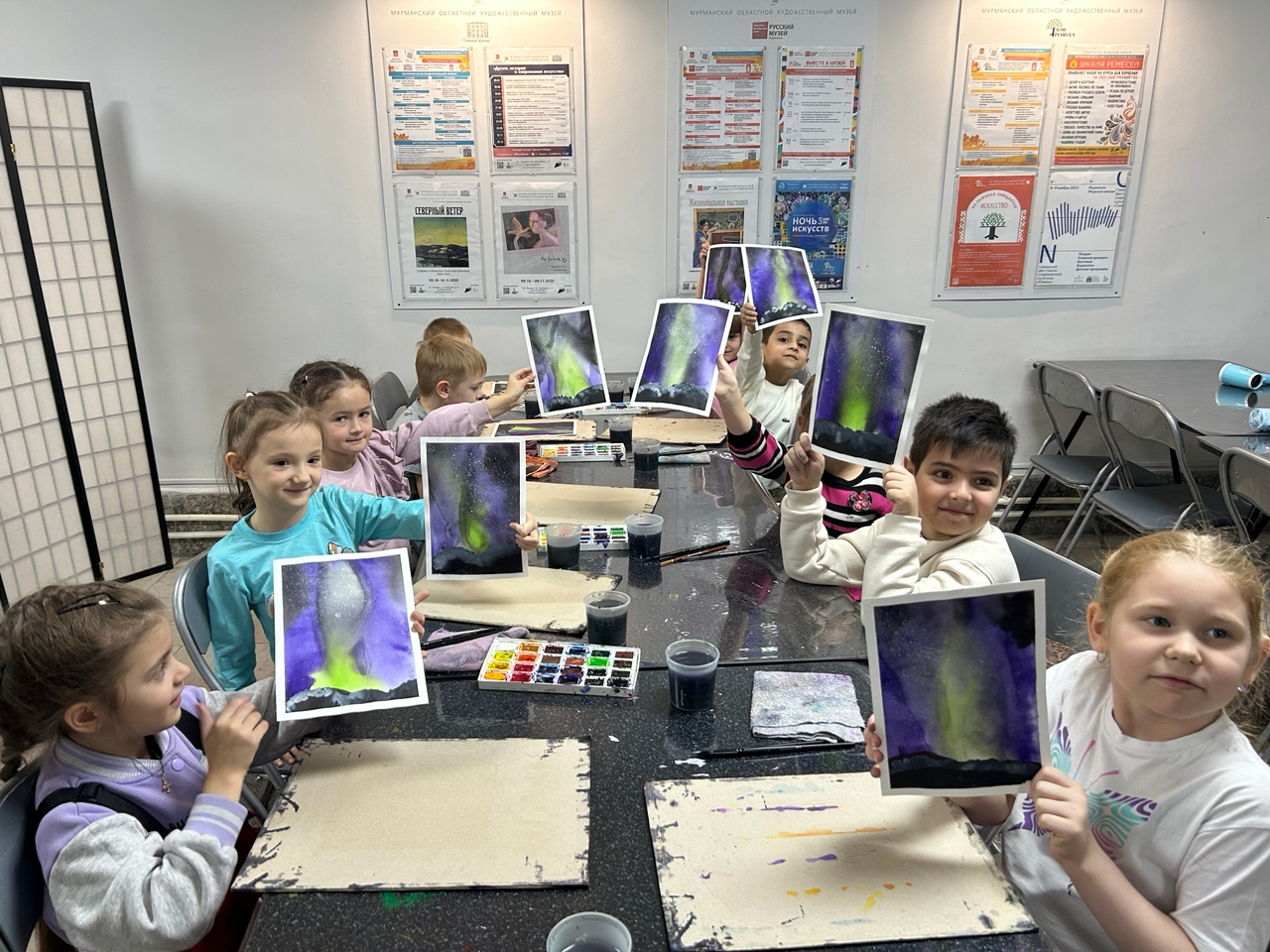 2 ноября в главном здании Мурманского областного художественного музея состоялся мастер-класс «Как приручить акварель. Прием "Мокрым по мокрому" для детей из детского сада №83