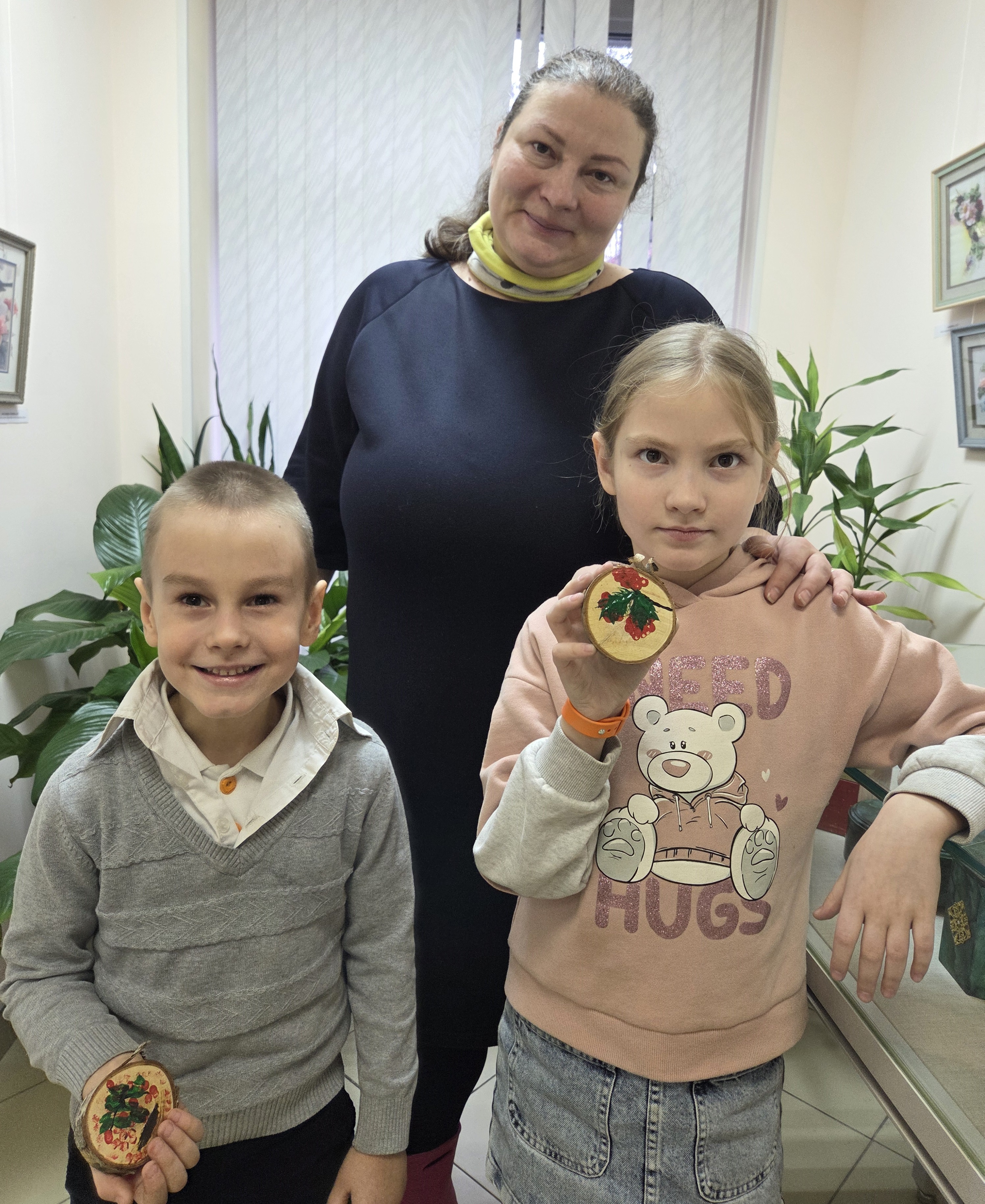 В заключение участники приступили к творческому заданию. Под руководством специалиста на деревянных спилах гости изобразили ветку рябину, используя необычную технику «метод тычка»