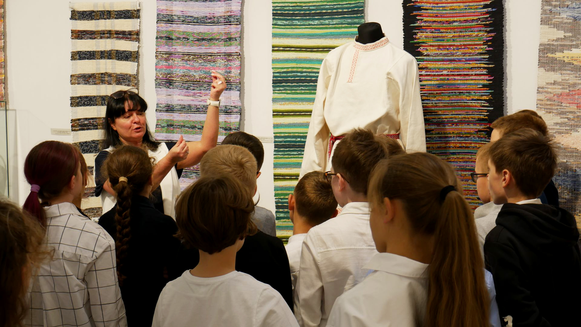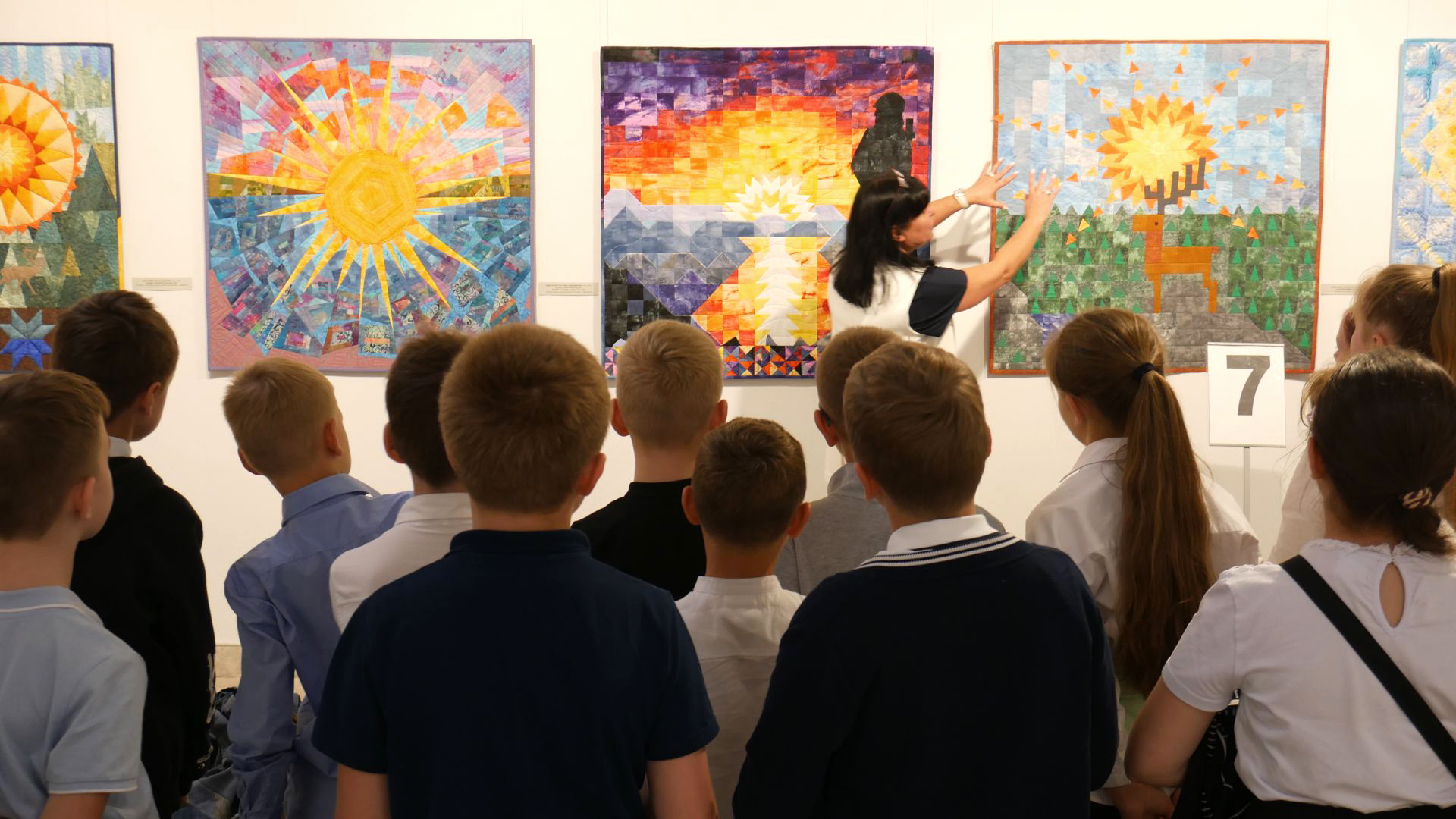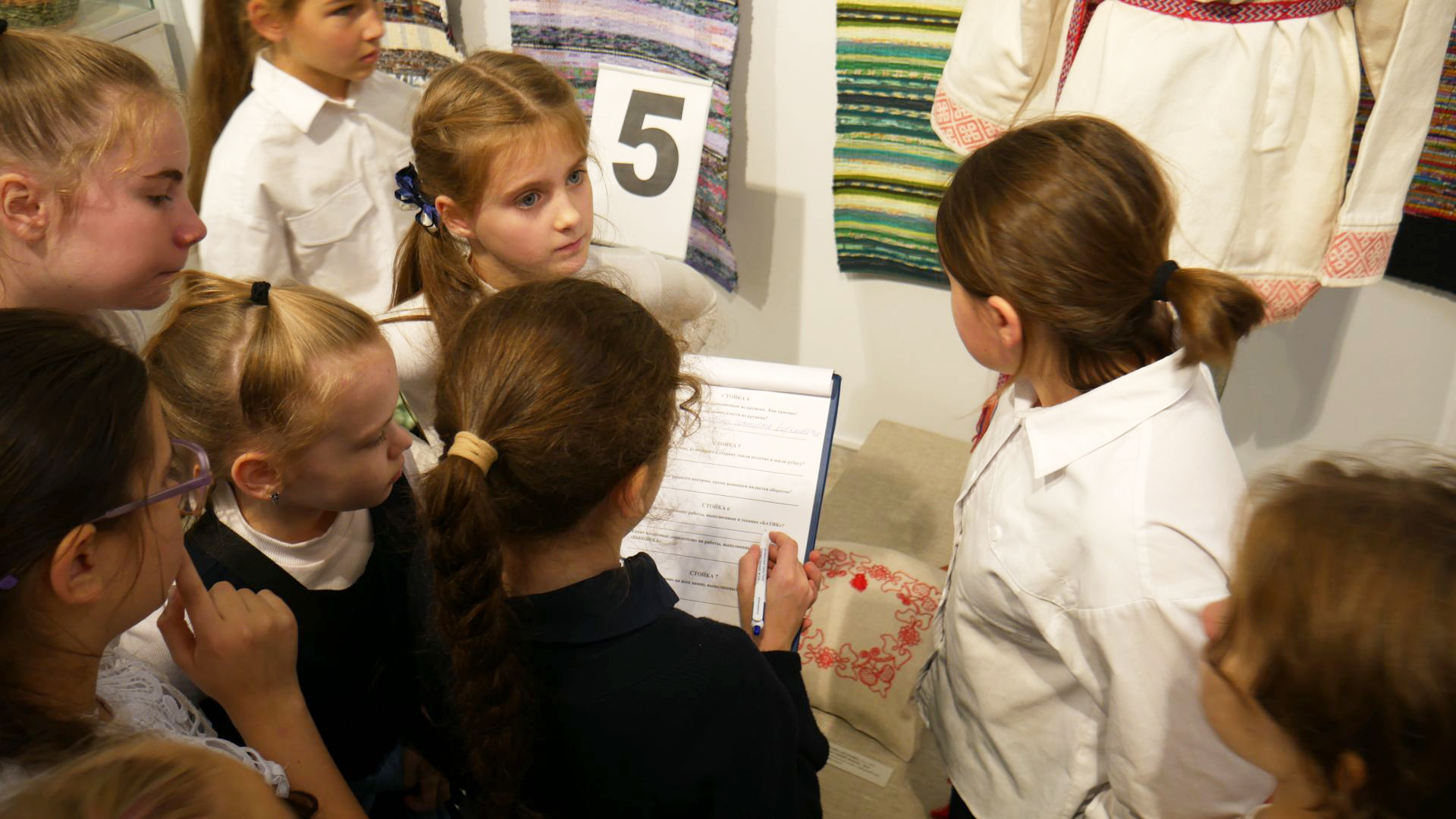 Посетить необычный формат экскурсии пришли ребята 4 «В» класса гимназии №5 города Мурманск. Прослушав блиц-экскурсию по 50-й юбилейной выставке любительского изобразительного и декоративно-прикладного искусства Мурманской области, ребятам предстояло самостоятельно пройти квест «С ремеслом спеши дружить!»