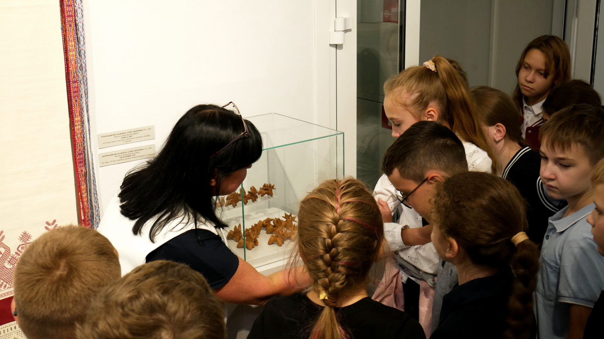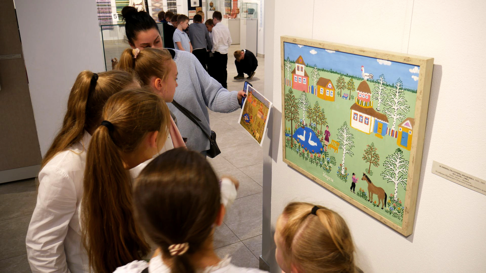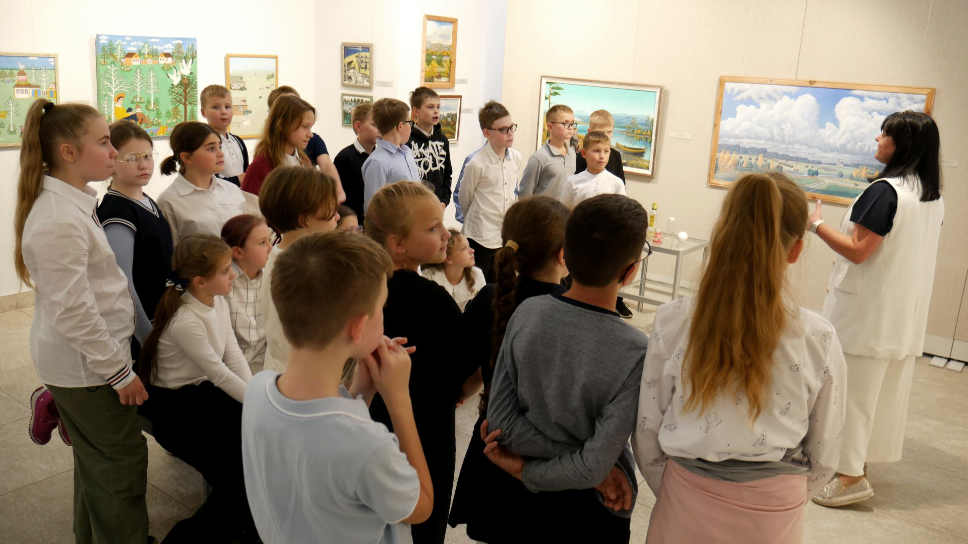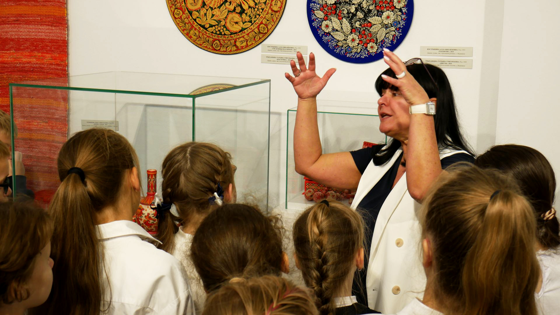 Посетить необычный формат экскурсии пришли ребята 4 «В» класса гимназии №5 города Мурманск. Прослушав блиц-экскурсию по 50-й юбилейной выставке любительского изобразительного и декоративно-прикладного искусства Мурманской области, ребятам предстояло самостоятельно пройти квест «С ремеслом спеши дружить!»