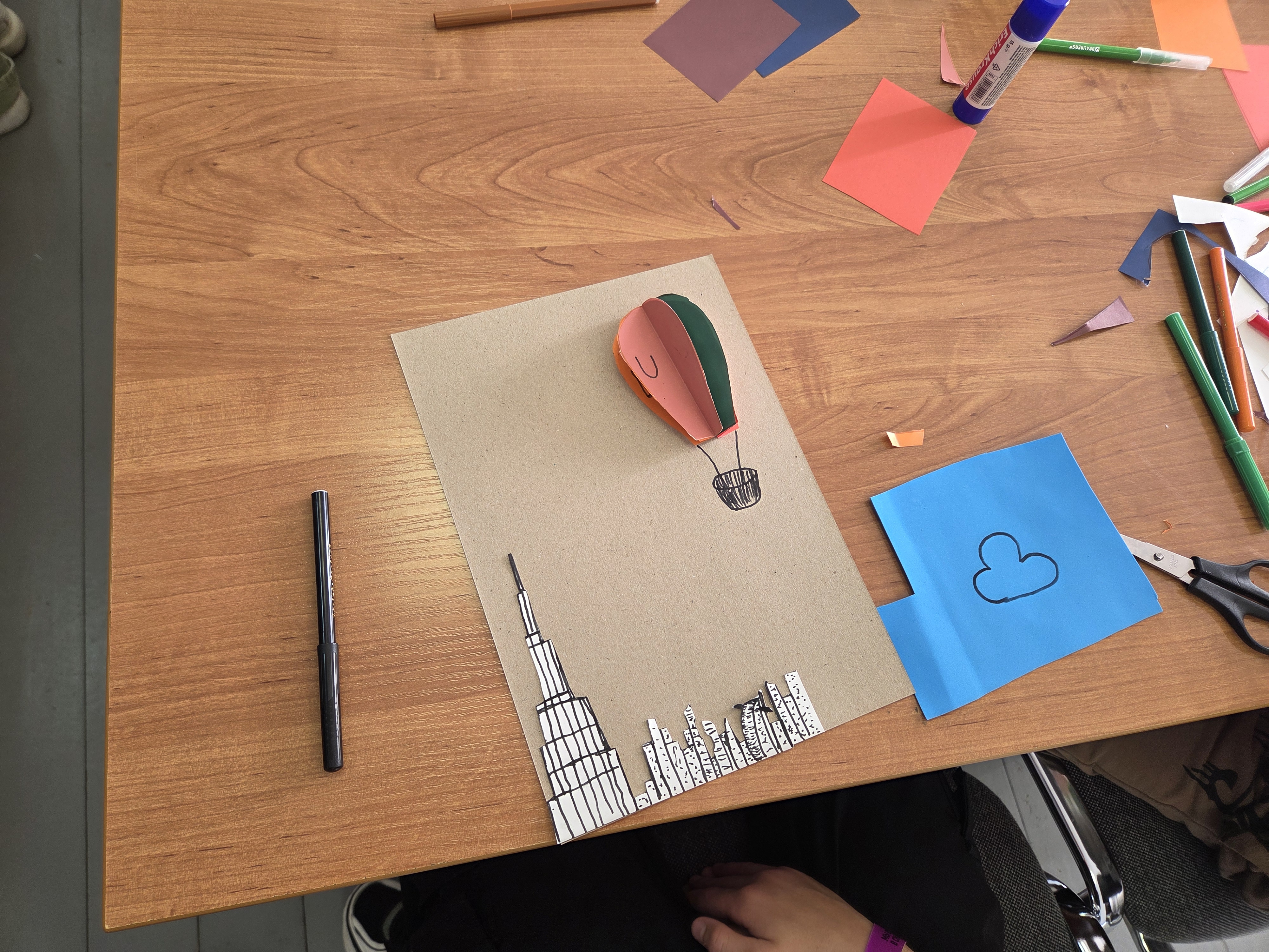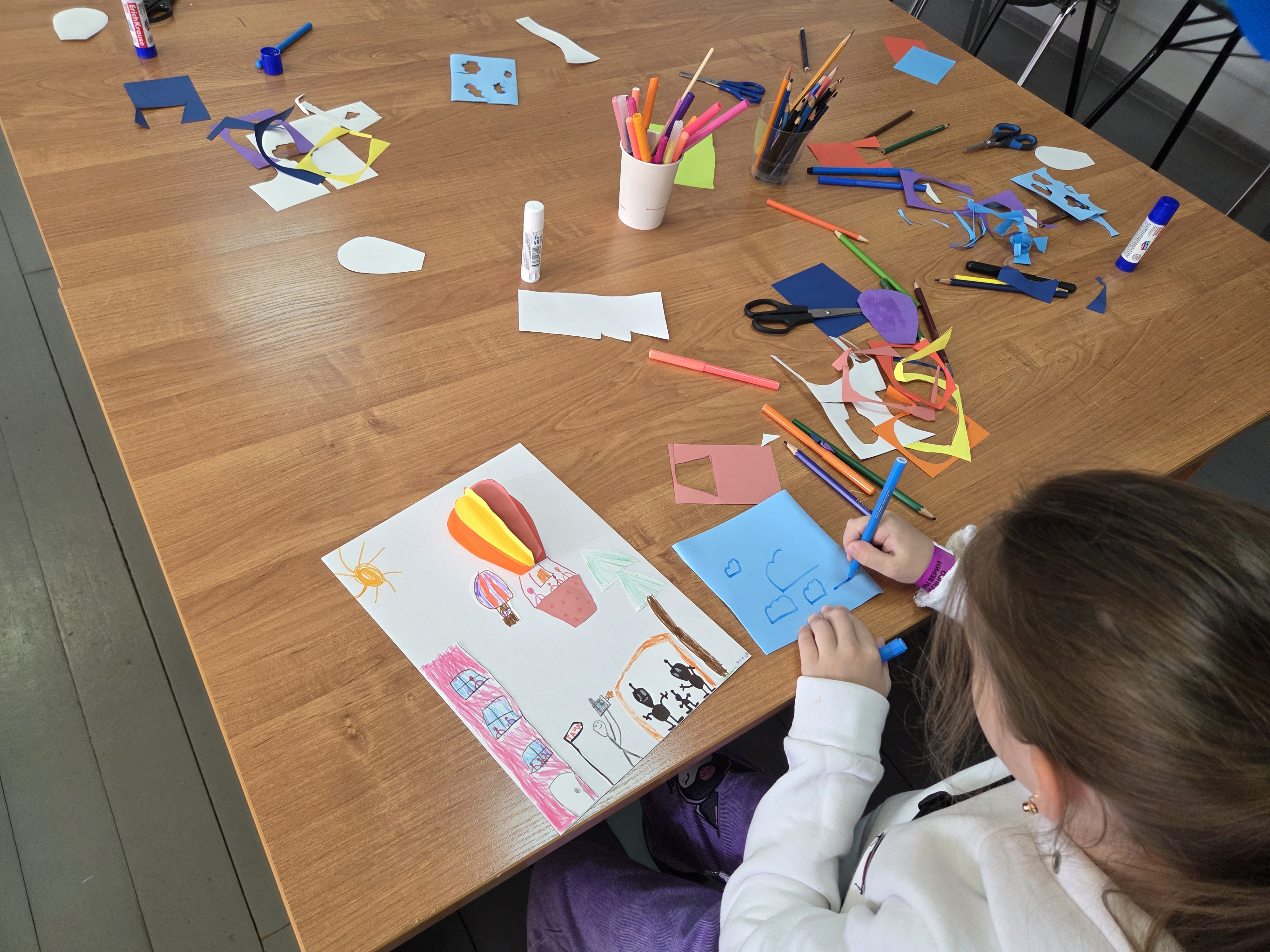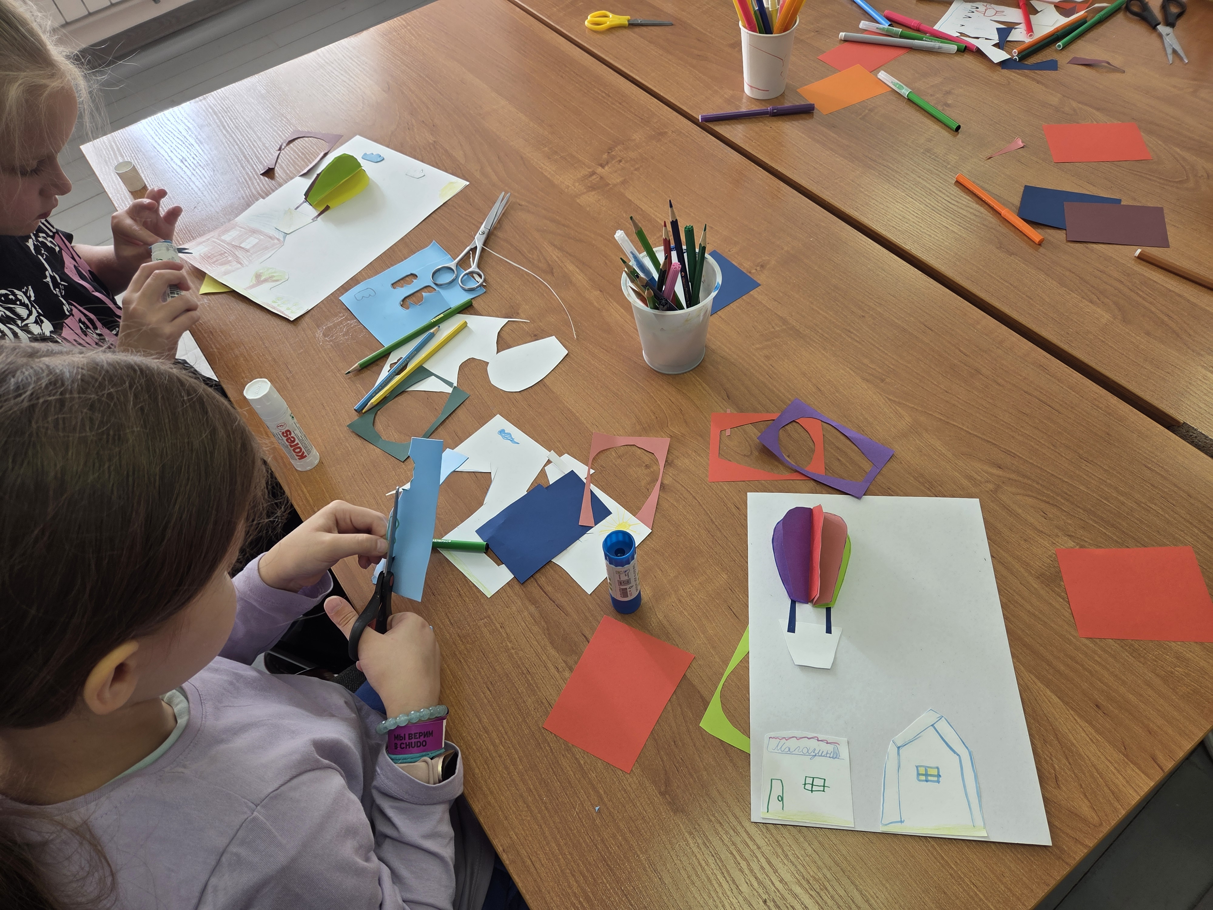 Участники мастер-класса смогли почувствовать себя настоящими путешественниками во времени и пространстве благодаря необычной творческой технике — объёмной аппликации! Вооружившись ножницами, клеем и яркими материалами, дети создали удивительные композиции, изображающие полёт воздушного шара над живописными пейзажами. Каждый рисунок получился индивидуальным и неповторимым, отражающим фантазию и воображение каждого маленького художника.
