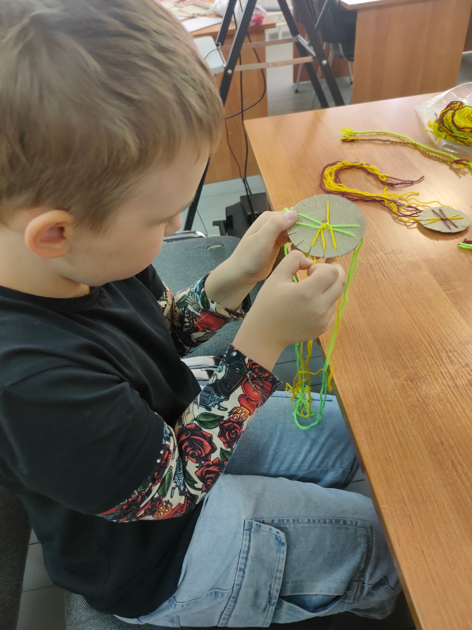 Используя хлопковые нитки мулине разного цвета и диск кумихимо, гости самостоятельно выполнили шнуры разными способами плетения. В итоге получились замечательные яркие браслеты!