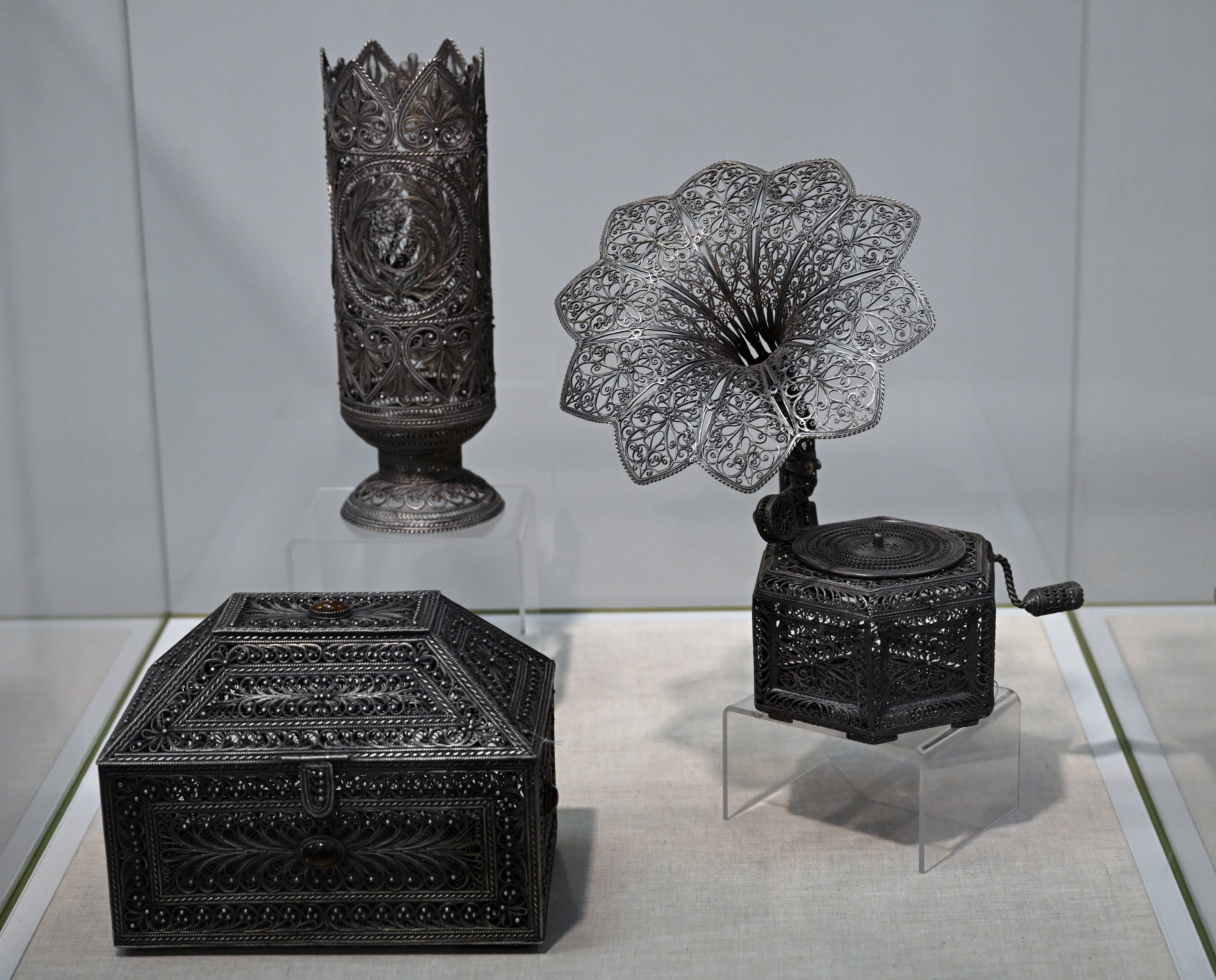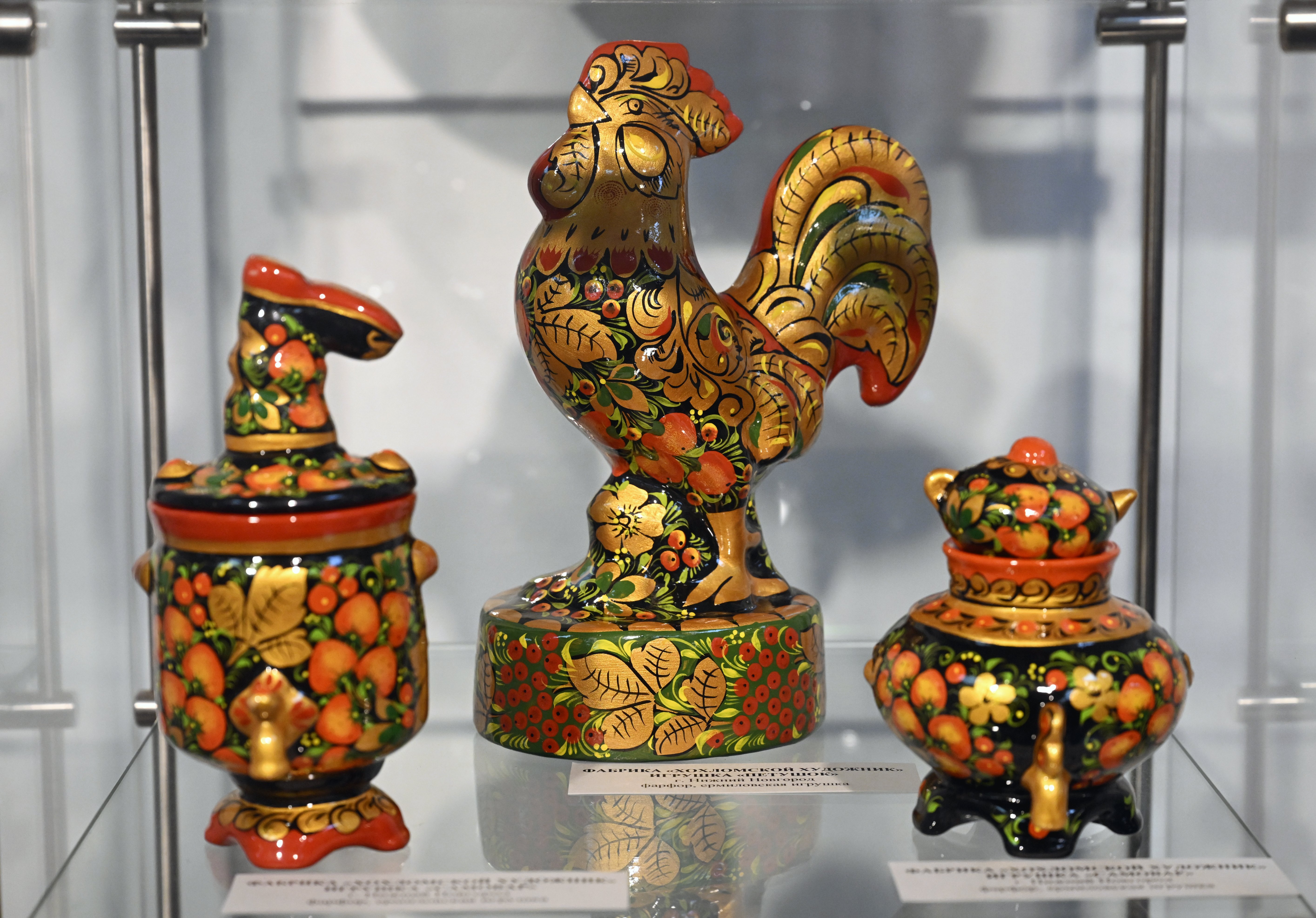 На выставке представлены уникальные изделия, созданные руками талантливых мастеров из Союза предприятий народных художественных промыслов Нижегородской области и художественных ремесел Мурманской области.