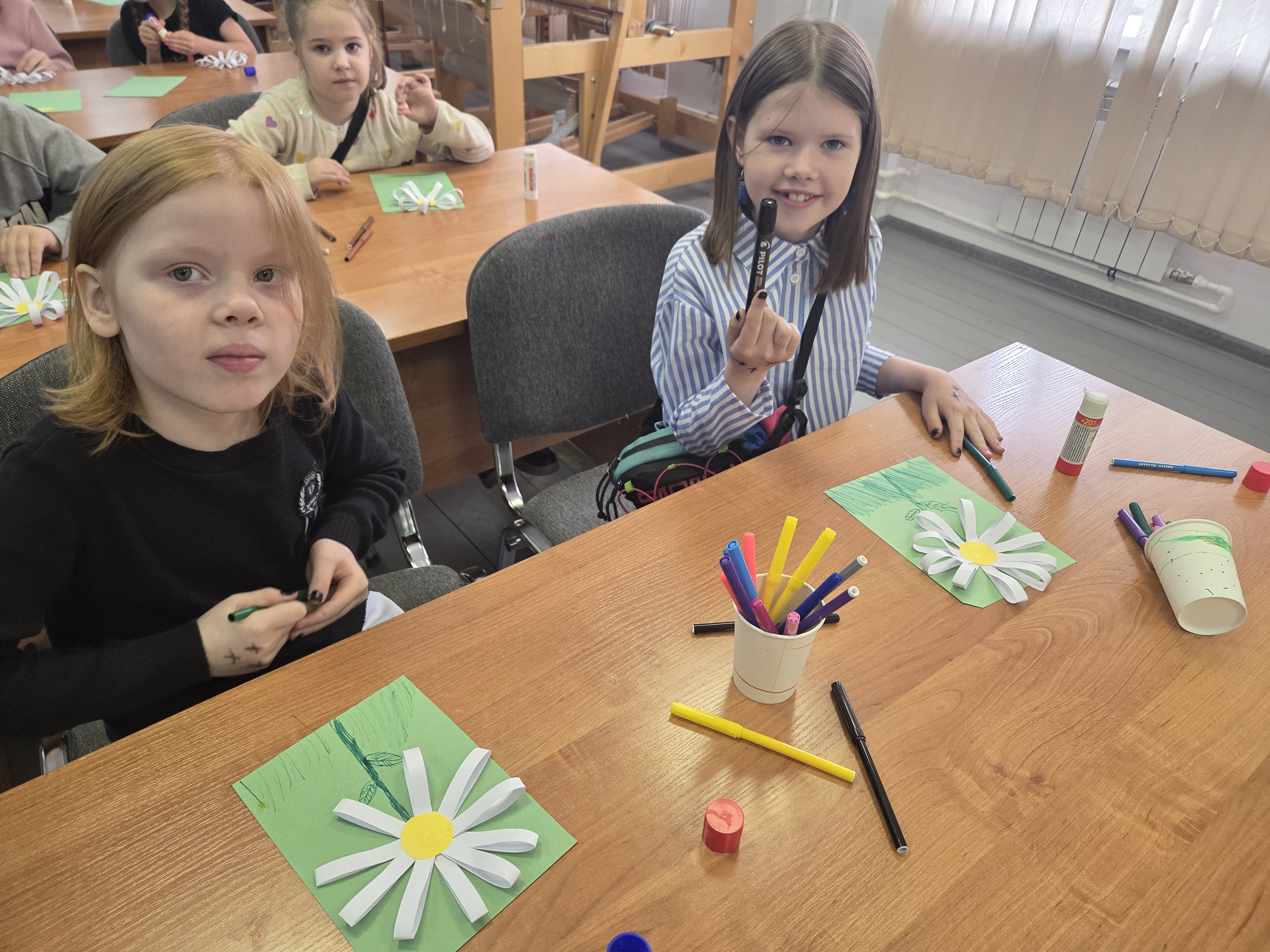 Яркая и жизнерадостная ромашка помогает сделать праздник узнаваемым и популярным. Девчонки и мальчишки с удовольствием принялись за изготовление цветов. Вскоре у всех ребят в руках красовалась самодельная ромашка, которую ребята обещали подарить родителям и близким.