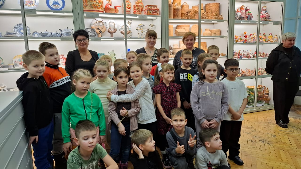 Ребята, посетив зал постоянной экспозиции «Открытое хранение живописи и декоративно-прикладного искусства России», не только ознакомились с многообразием народного творчества, но и узнали историю возникновения матрешки, а также побеседовали о ее видовом разнообразии.