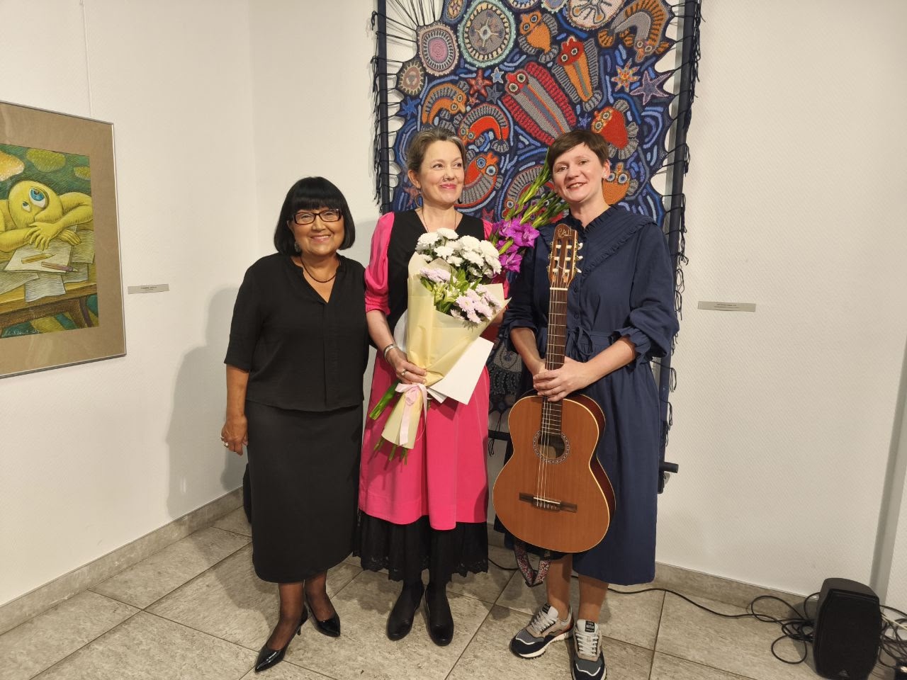 Открытие прошло в теплой доброжелательной атмосфере. В зале собрались близкие и родные люди, друзья и коллеги Марии. Прозвучало множество добрых слов и пожеланий, друг художника Екатерина Ефремова вместе с автором и гостями выставки исполнили несколько песен под гитару.