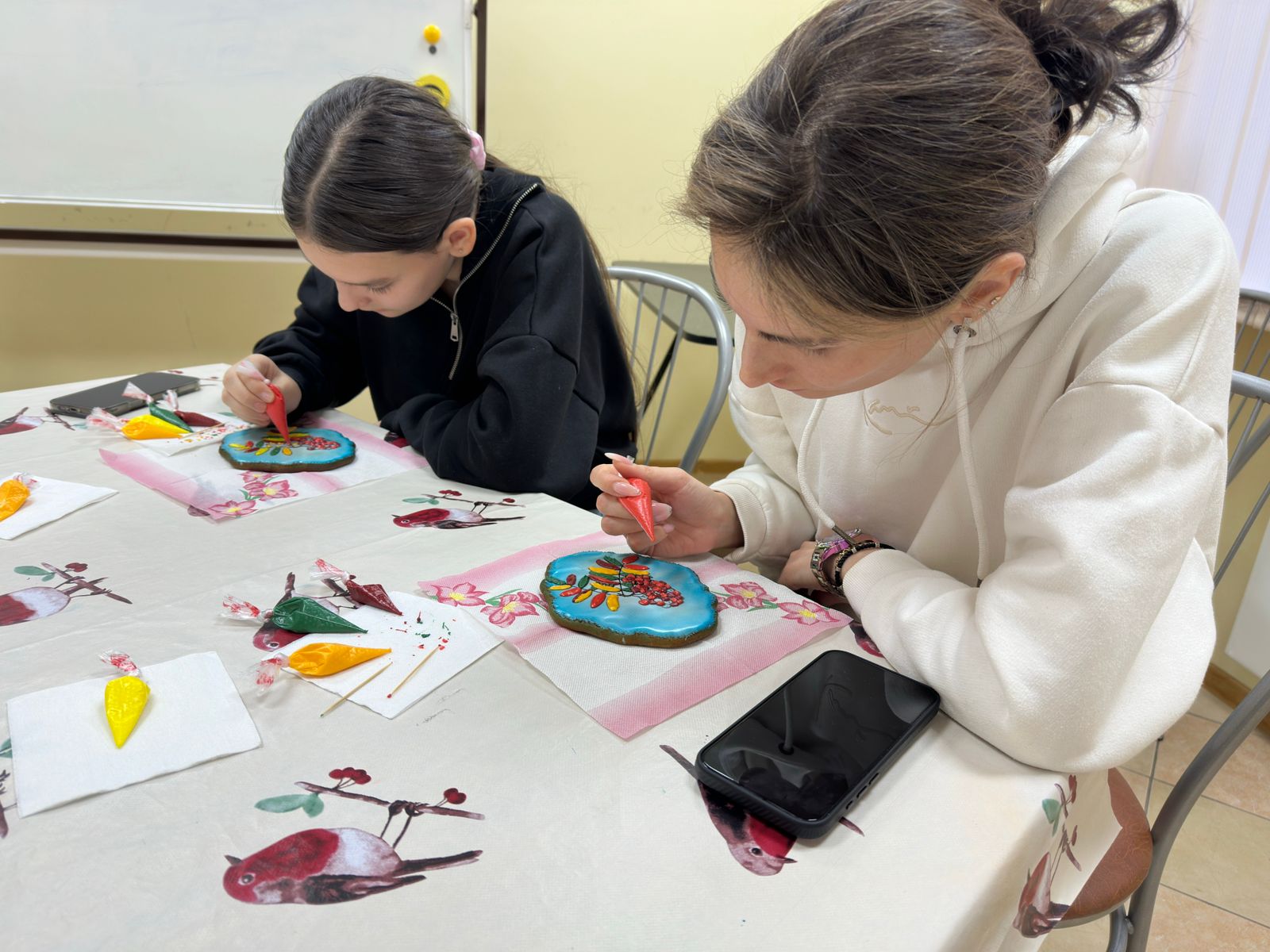 Мы окунулись в волшебный мир кондитерского искусства, создавая уникальные узоры и рисунки на ароматных имбирных пряниках. Каждый участник проявил свою фантазию и мастерство, превращая обычные печенья в настоящие произведения искусства.