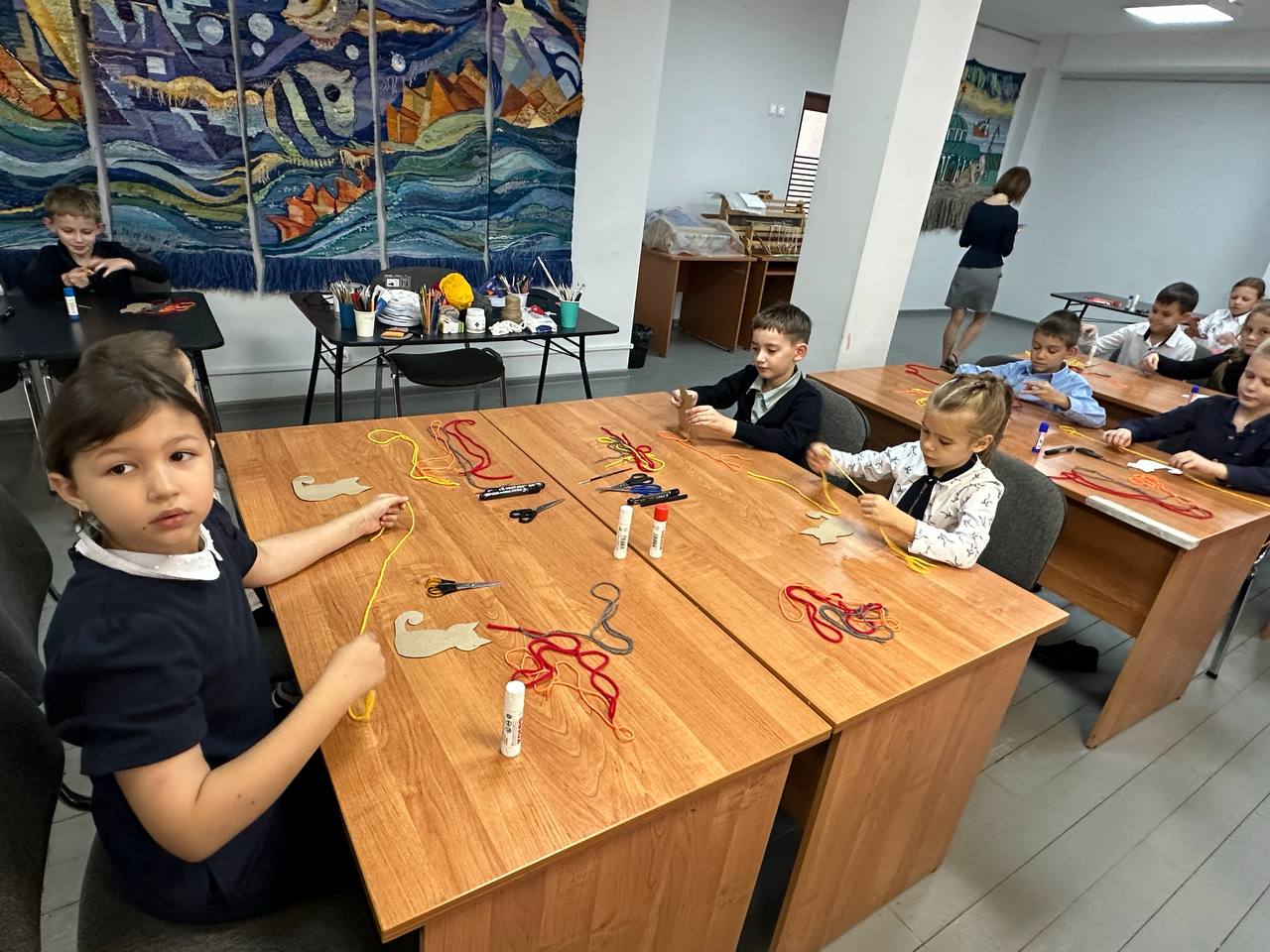 Специалисты отдела подготовили для гостей познавательное мероприятие, посвященное текстильному искусству. Вначале ребята посмотрели гобелены, узнали как они создаются, какие нитки используются, а затем приступили к творческому заданию.