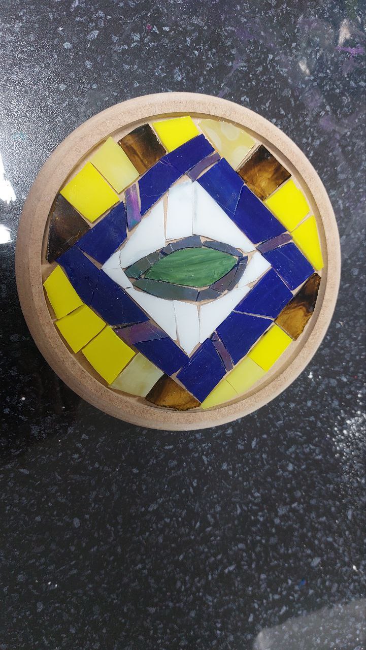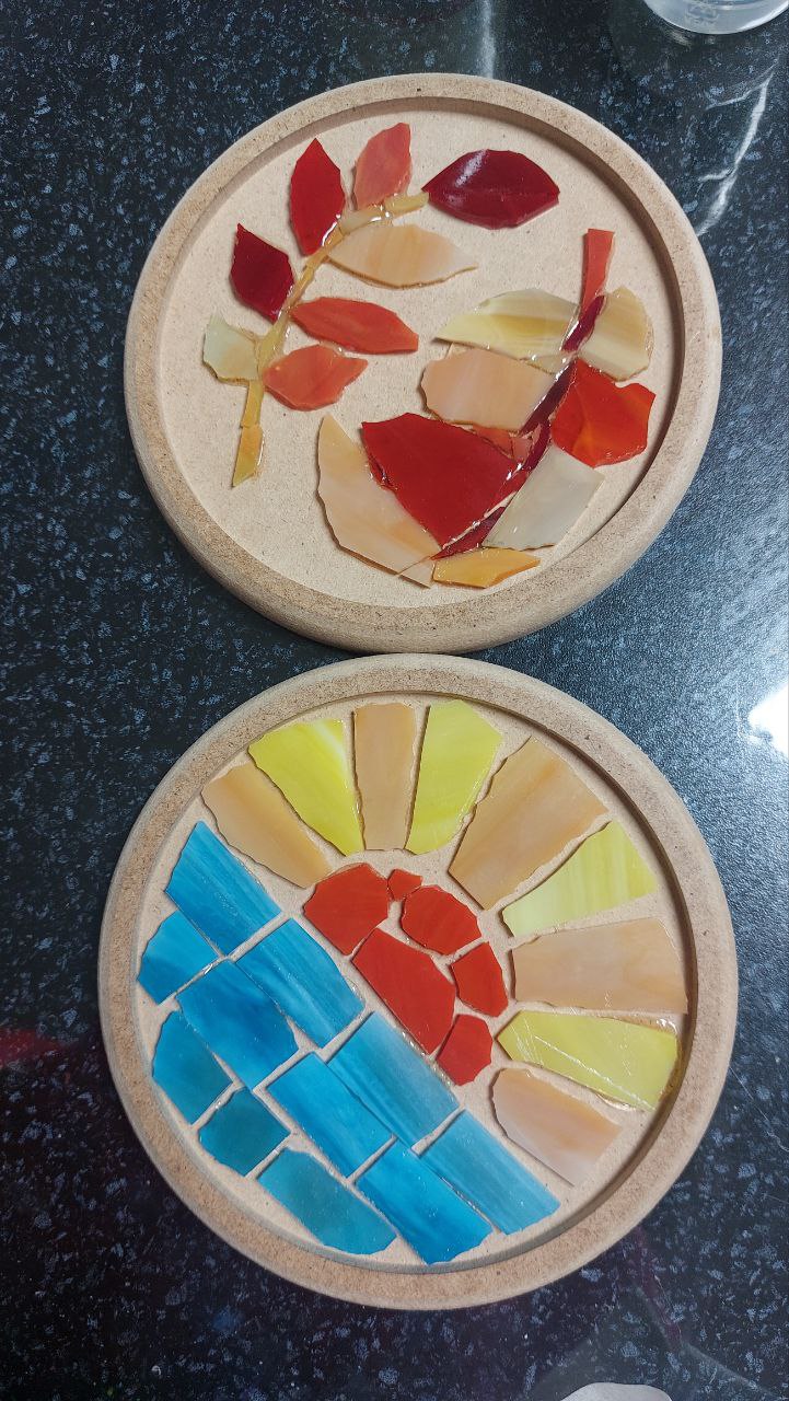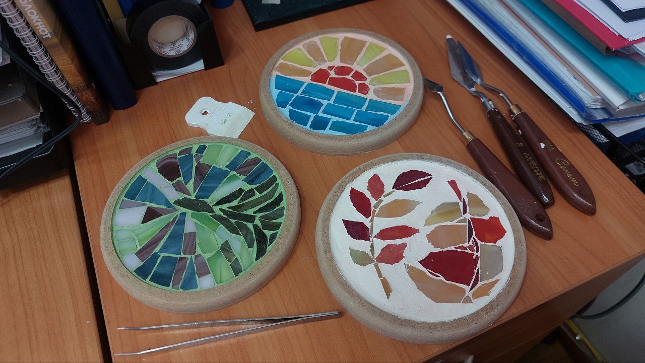 В итоге получились различные объекты: одни участники мастер-класса пожелали создать настенное панно, другие увидели в своих произведениях предметы утилитарного характера и решили, что их мозаики станут подставками под горячее.
