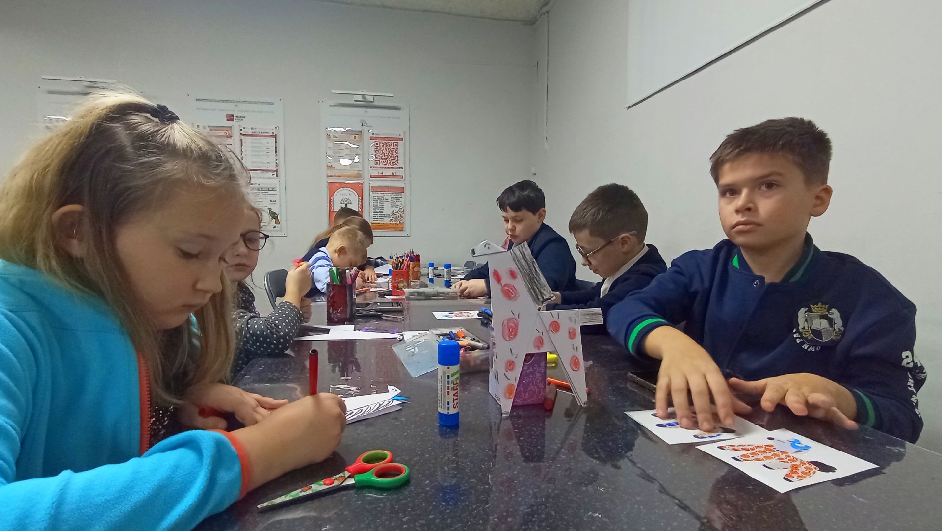 Школьники начали свой визит с «Фонда открытого хранения изобразительного и декоративного искусства», где познакомились не только с экспонатами музея, но и с системами их хранения. Особое внимание ребята обратили на коллекцию глиняных игрушек. Узнав подробнее об истории дымковской игрушки, школьники перешли к творческой части мероприятия, на которой вначале самостоятельно сложили фигурку лошади из бумаги, а затем украсили её традиционным узором.