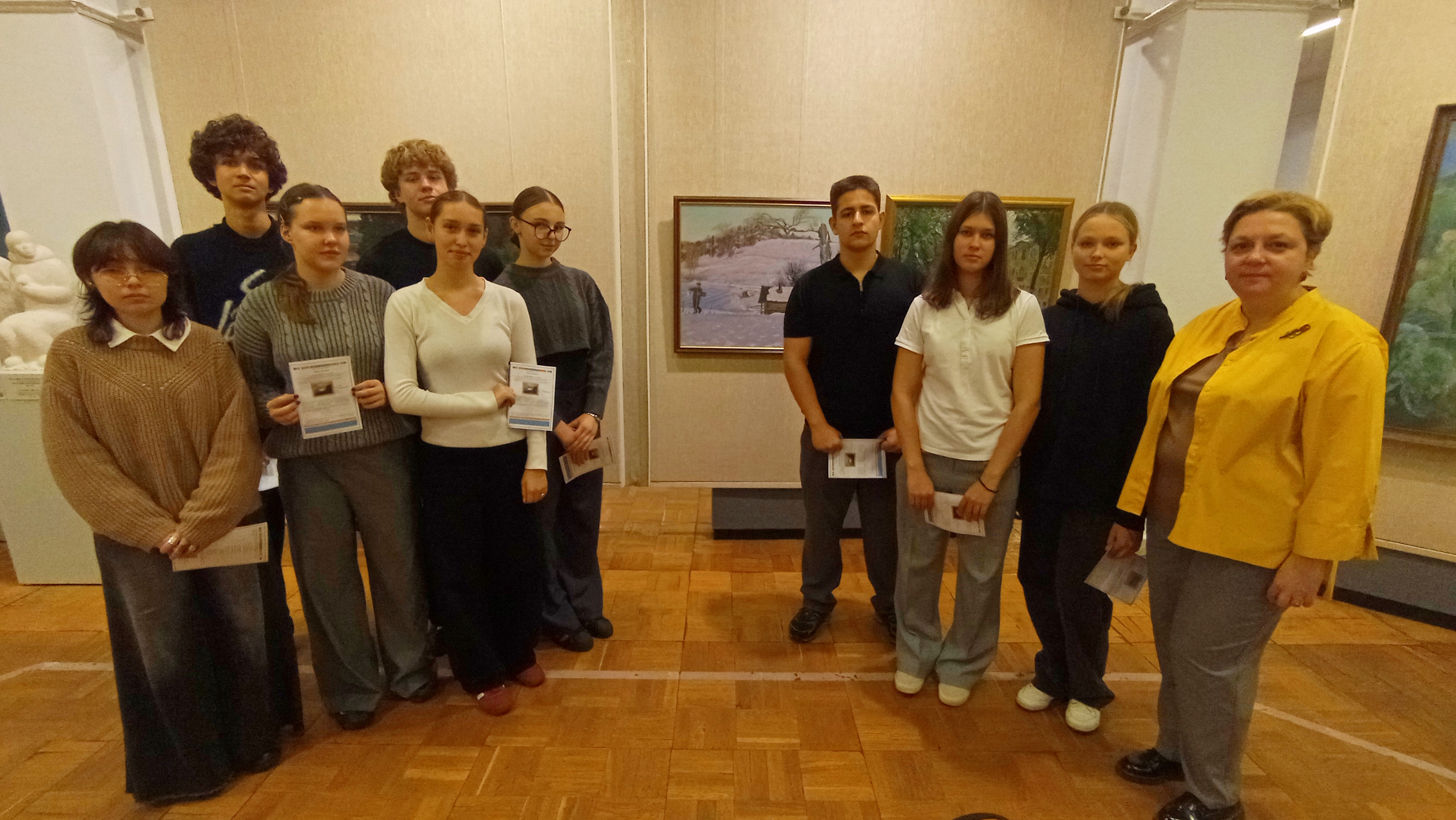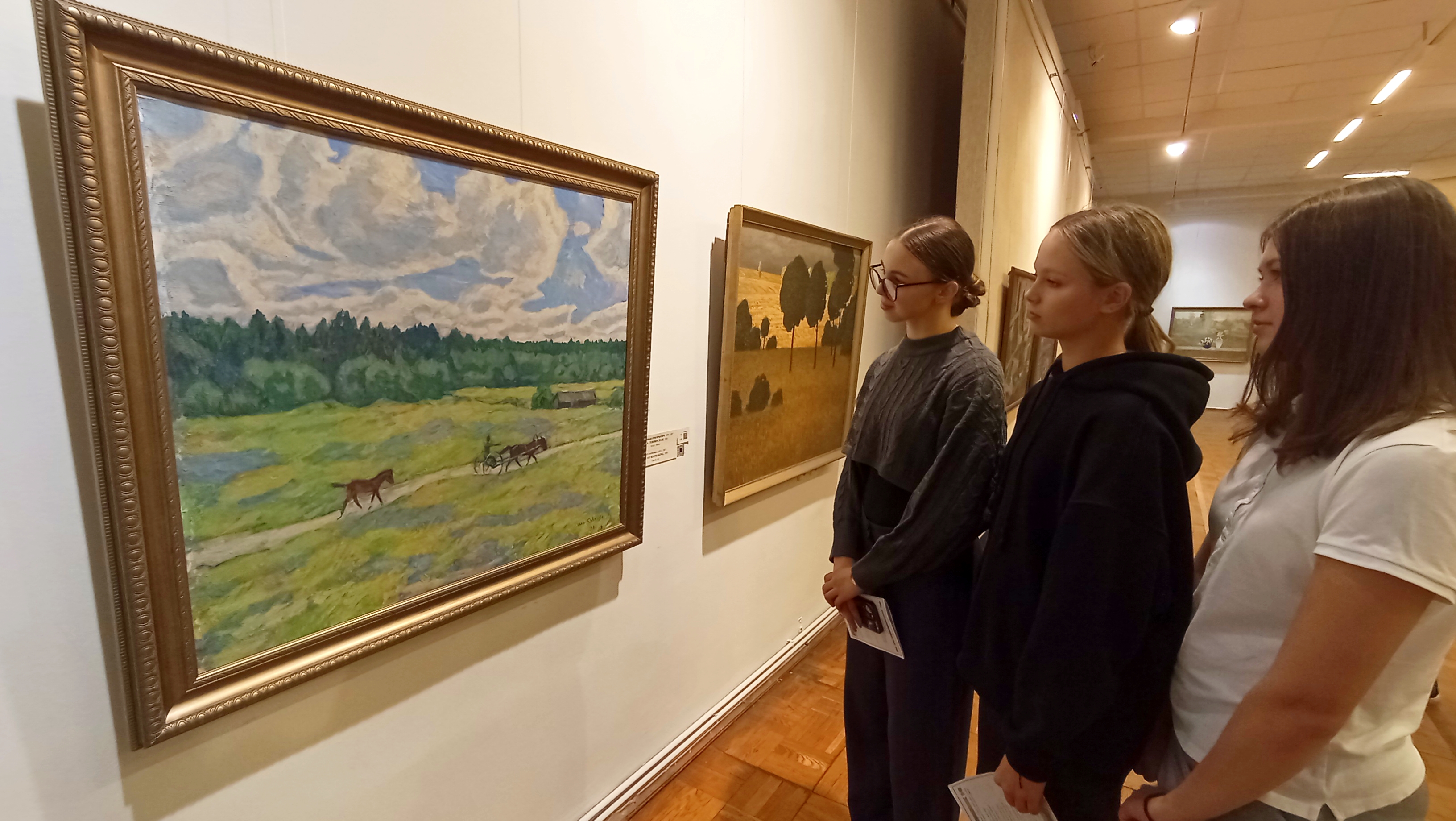 8 октября в главном здании Мурманского областного художественного музея состоялся музейный урок, приуроченный к 130-летнему юбилею Сергея Есенина. Участниками урока «Образ Родины в живописи и поэзии» стали 11а класс МБОУ г. Мурманска Гимназия №3 и их классный руководитель Мирошниченко Августа Дмитриевна. В ходе урока ребята посетили зал постоянной экспозиции «Отечественное изобразительное искусство XVII - XXI веков» и сравнили художественные образы, созданные мастерами кисти и виртуозным поэтом Серебряного века. Старшеклассники познакомились с пейзажами таких художников как Харлампий Дмитриевич Костанди, Николай Михайлович Ромадин, Виктор Георгиевич Харлов, Иван Григорьевич Савенко и других. И, кончено же, вспомнили самые проникновенные стихотворения поэта, в которых он как никто другой выражал трепетную любовь к России.