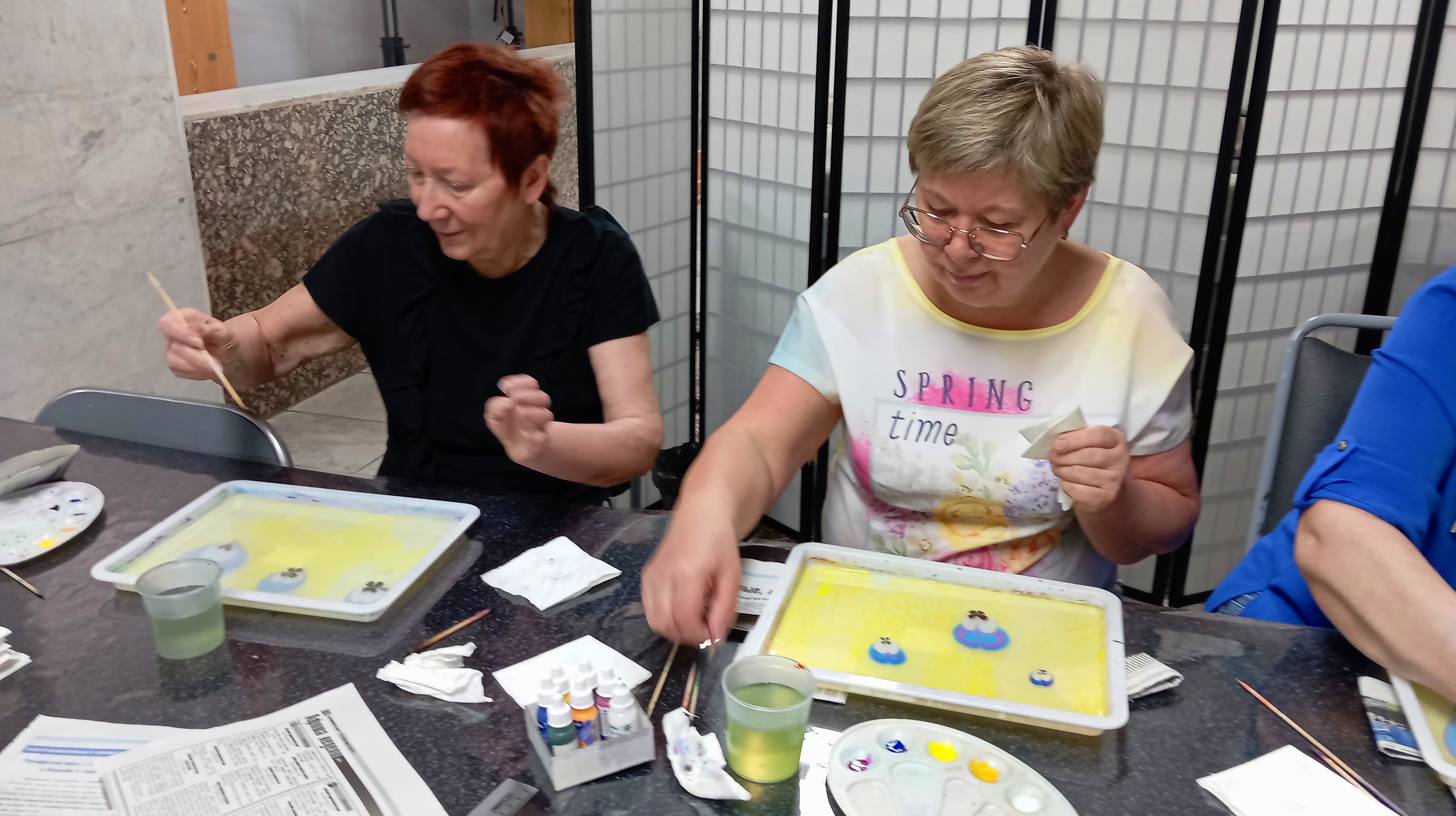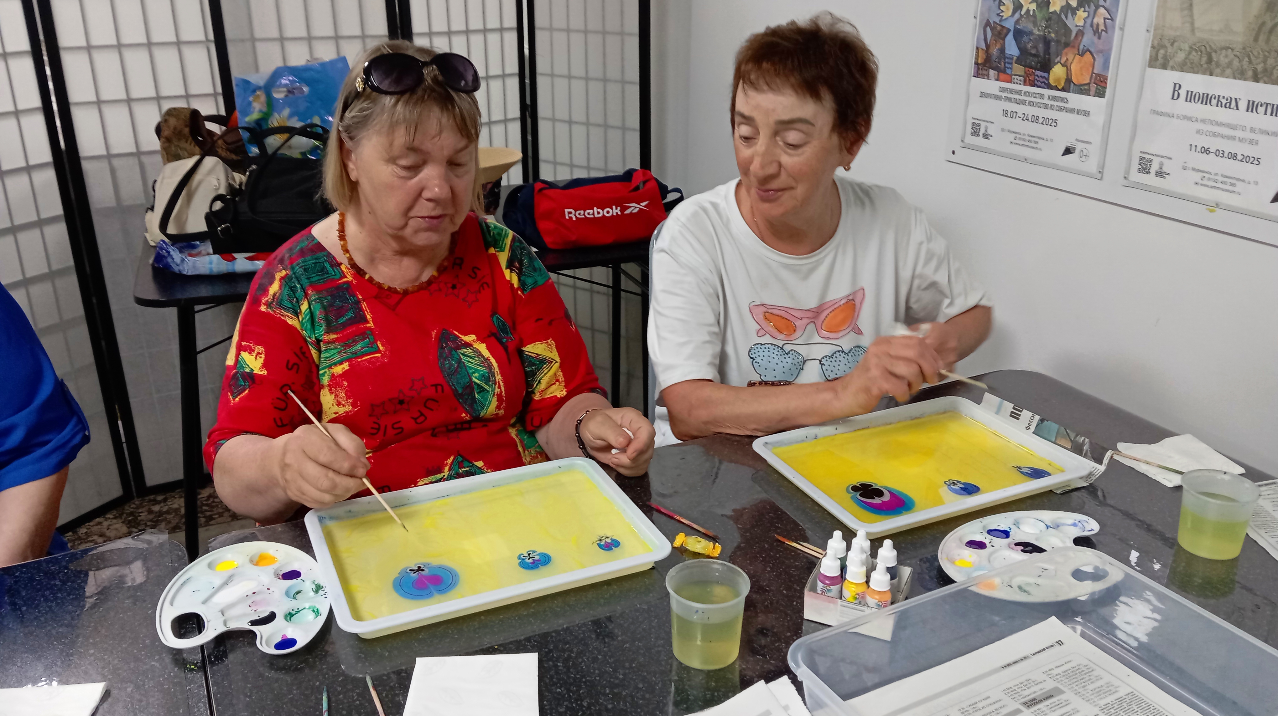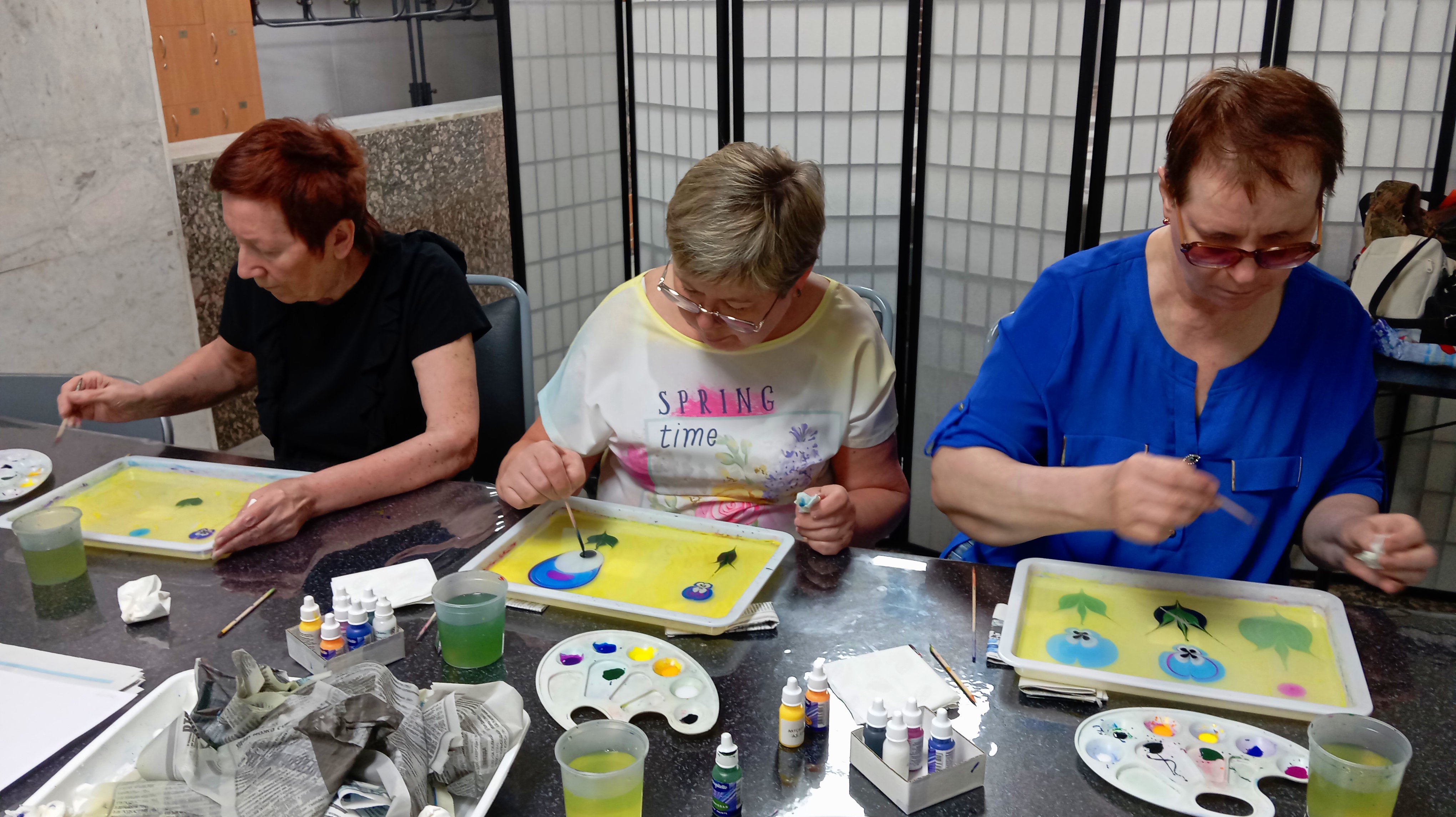 В главном здании состоялся мастер-класс в технике эбру «Анютины глазки»