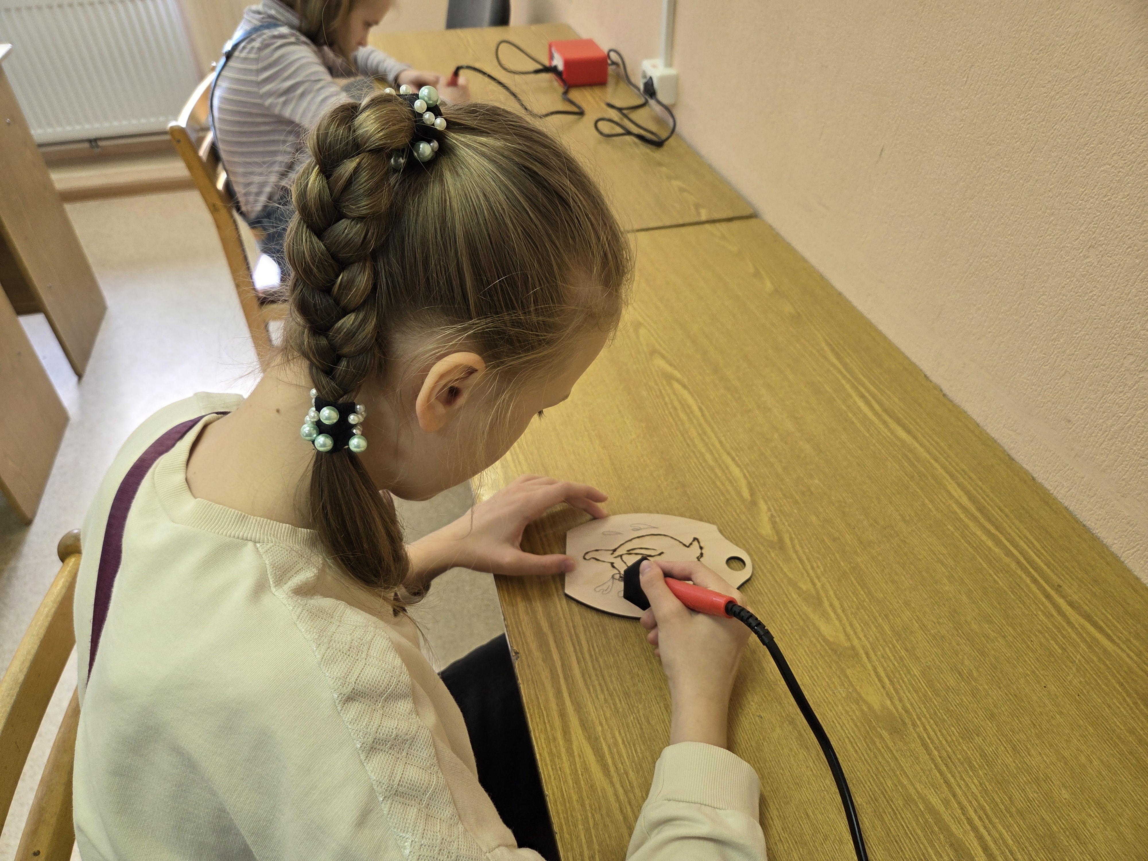 А затем все вместе приняли участие в мастер-классе по пирографии (выжиганию по дереву) и создали оригинальные памятные сувениры к началу учебного года.