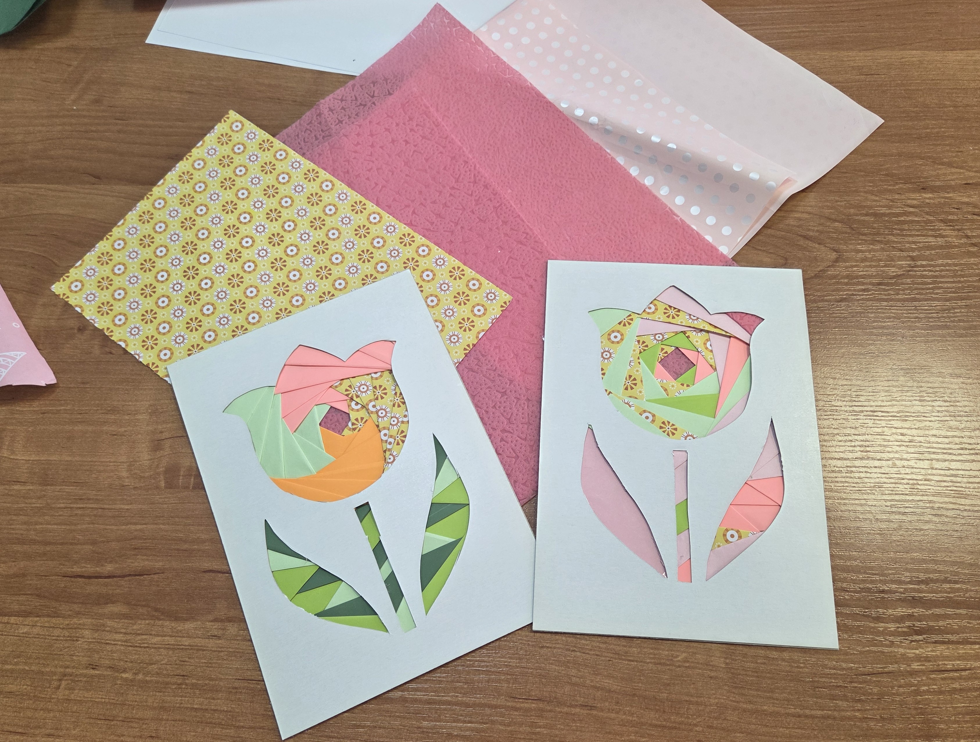 Это была прекрасная возможность для всех желающих попробовать себя в новом виде декоративно-прикладного искусства, которое сочетает в себе элементы оригами и квиллинга, позволяя создавать красивые объемные узоры и рисунки.