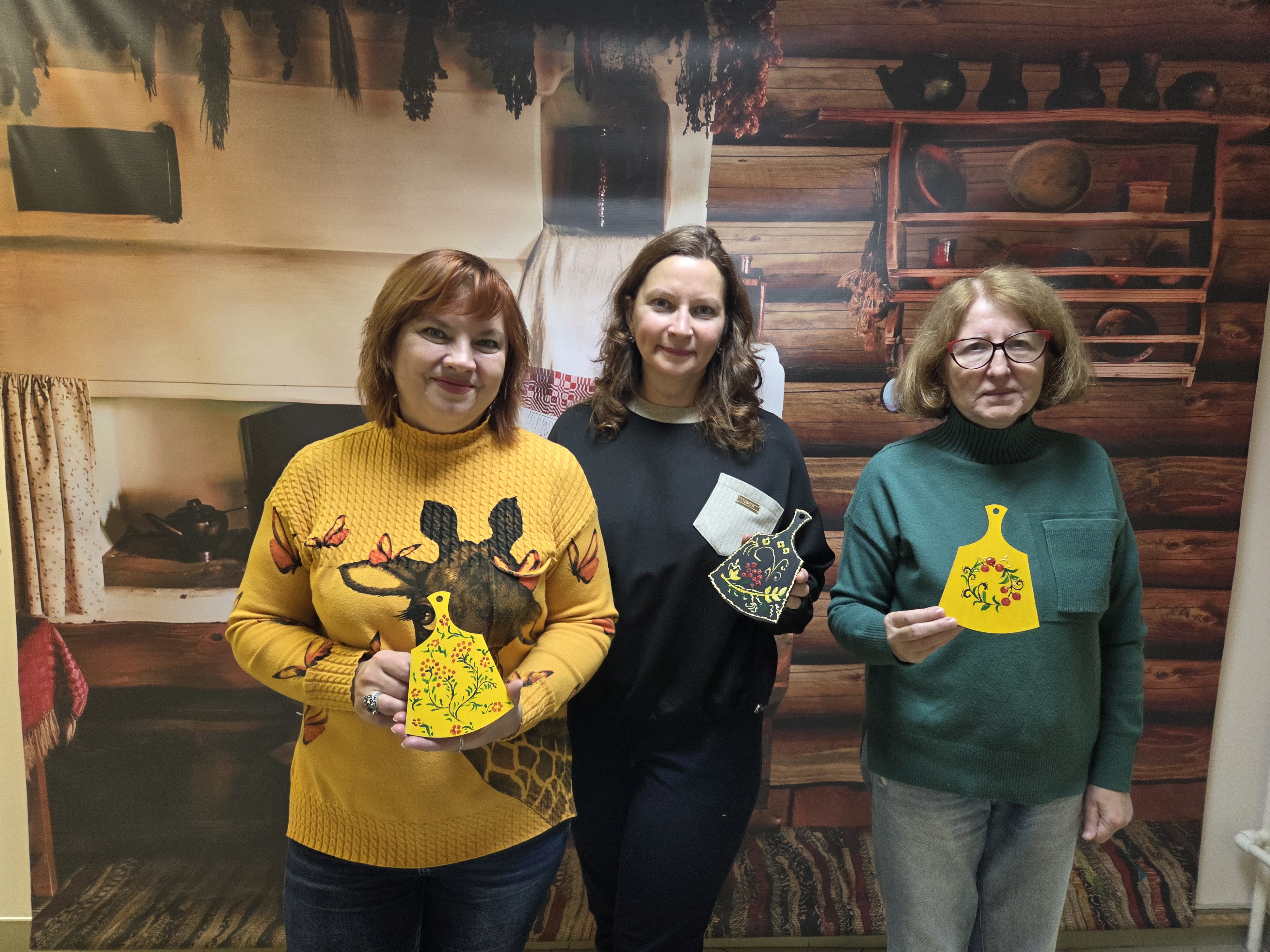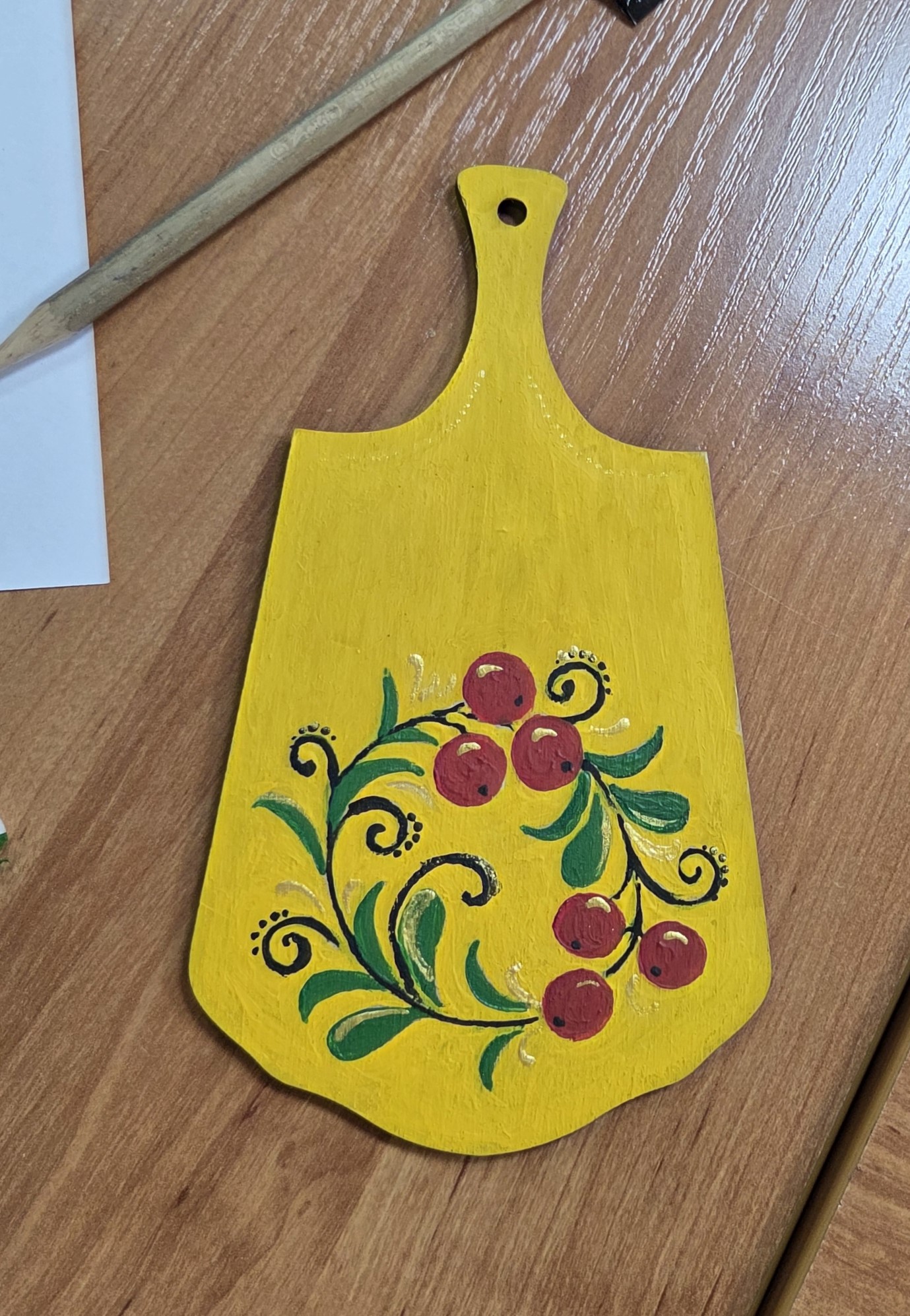 На мастер-классе роспись выполняли акриловыми красками, основой послужили деревянные дощечки. Весь процесс был необычным и увлекательным.